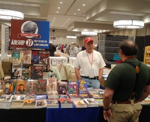 One of the first dear friend to greet us was Kim Turk. The last time we’d seen Kim, was at the first year Pulp Fest was done in Pittsburgh, along with her wonderful husband Scott. Both were familiar faces at this cone and would attend the Air Chief’s panels on New Pulp Writers. Shortly after that show, Scott passed away, a shock to all of us. For obvious reasons, Kim, didn’t return to the show until this past weekend and seeing her smiling and having fun again. Touched our hearts. The two amigos to the right are Frank Schildiner (in black) and Greg Gick. Both veteran Airship 27 writers who, during the weekend, assured us we’ll soon be seeing lots more of their work.