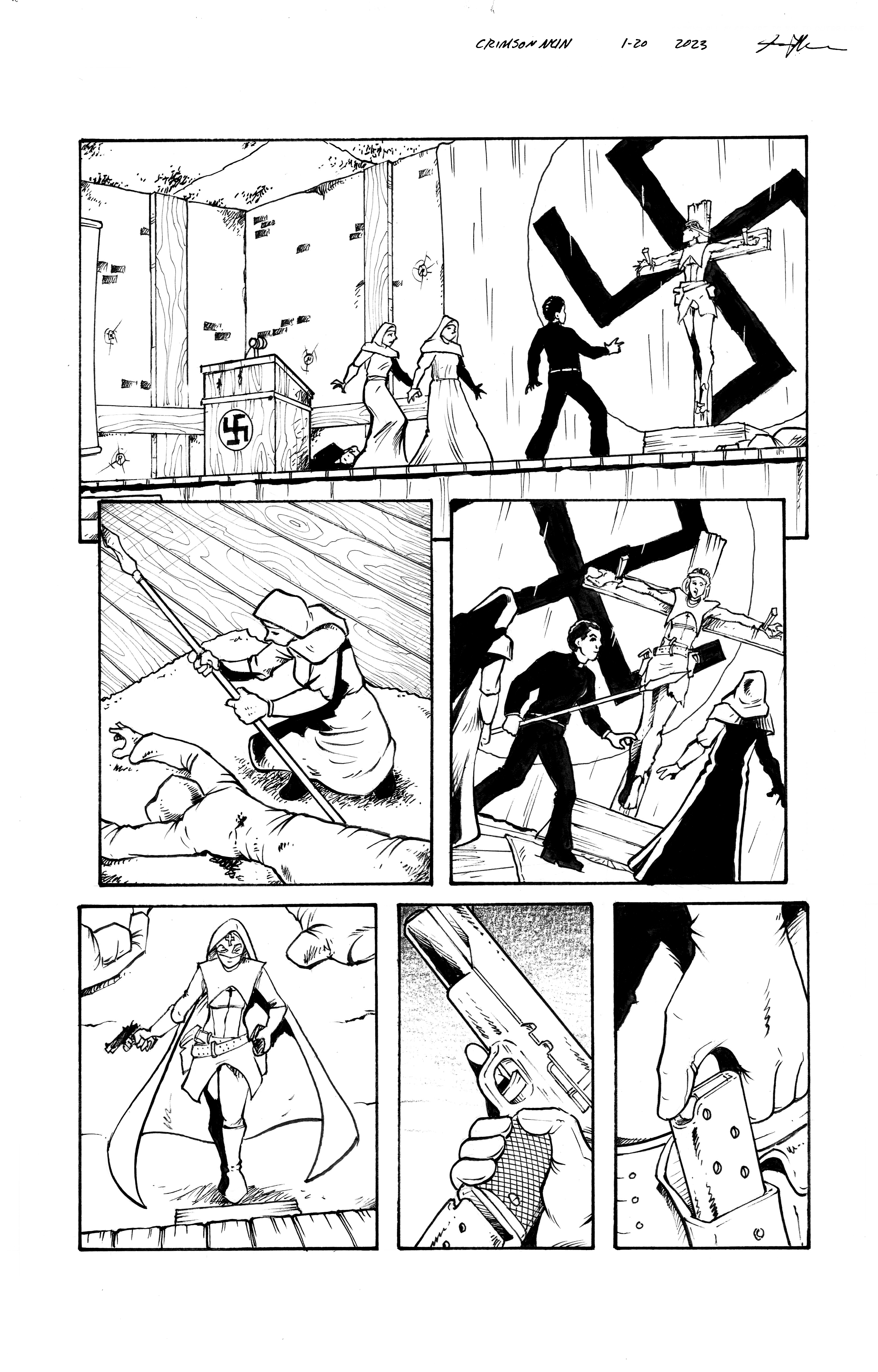 All twenty-two pages of this first issue have been penciled and inked by artist Jesse Thomas. As of today he has only six pages left to color and then the entire issue goes to artist Mike Belcher who will add the lettering. And then it’s finished and off to Ben Dunn at Antarctic Press. Note, artist Fred Lang is hard at work on the cover and when you see it, trust the Air Chief, it will blow you way.