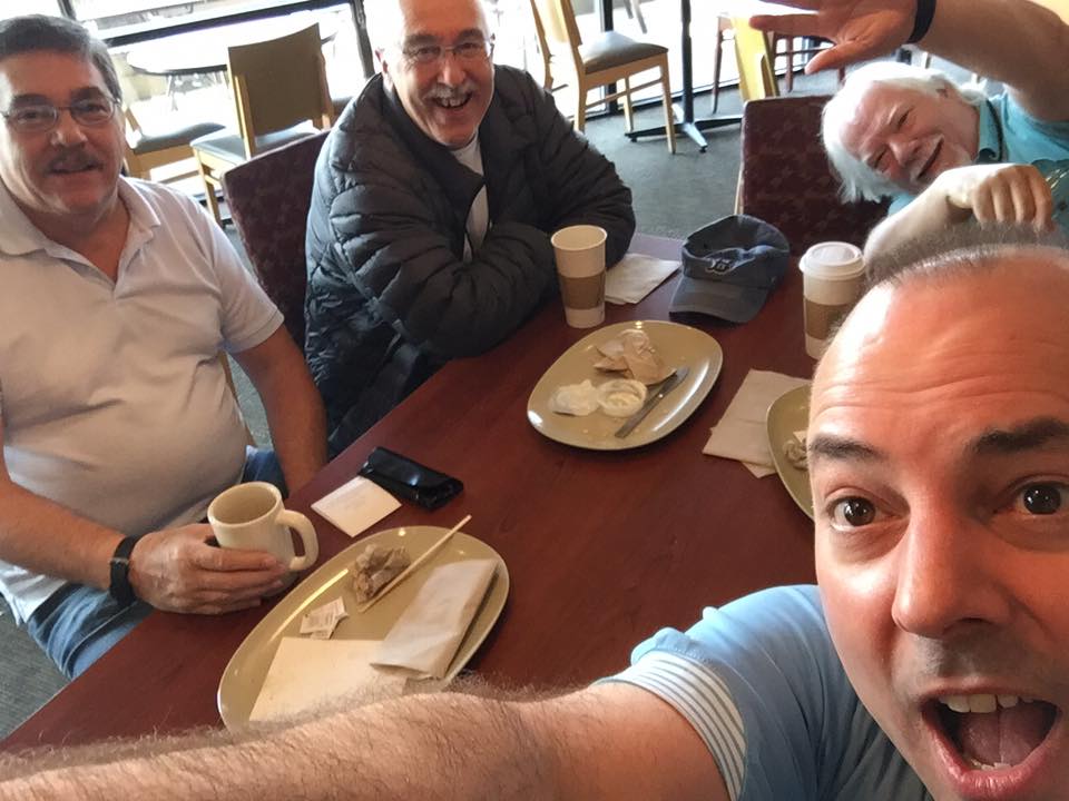 Five minutes after snapping the first photo, artist Doug Klauba arrived and Van immediately got him into this picture. Those breakfast get togethers are so much fun.