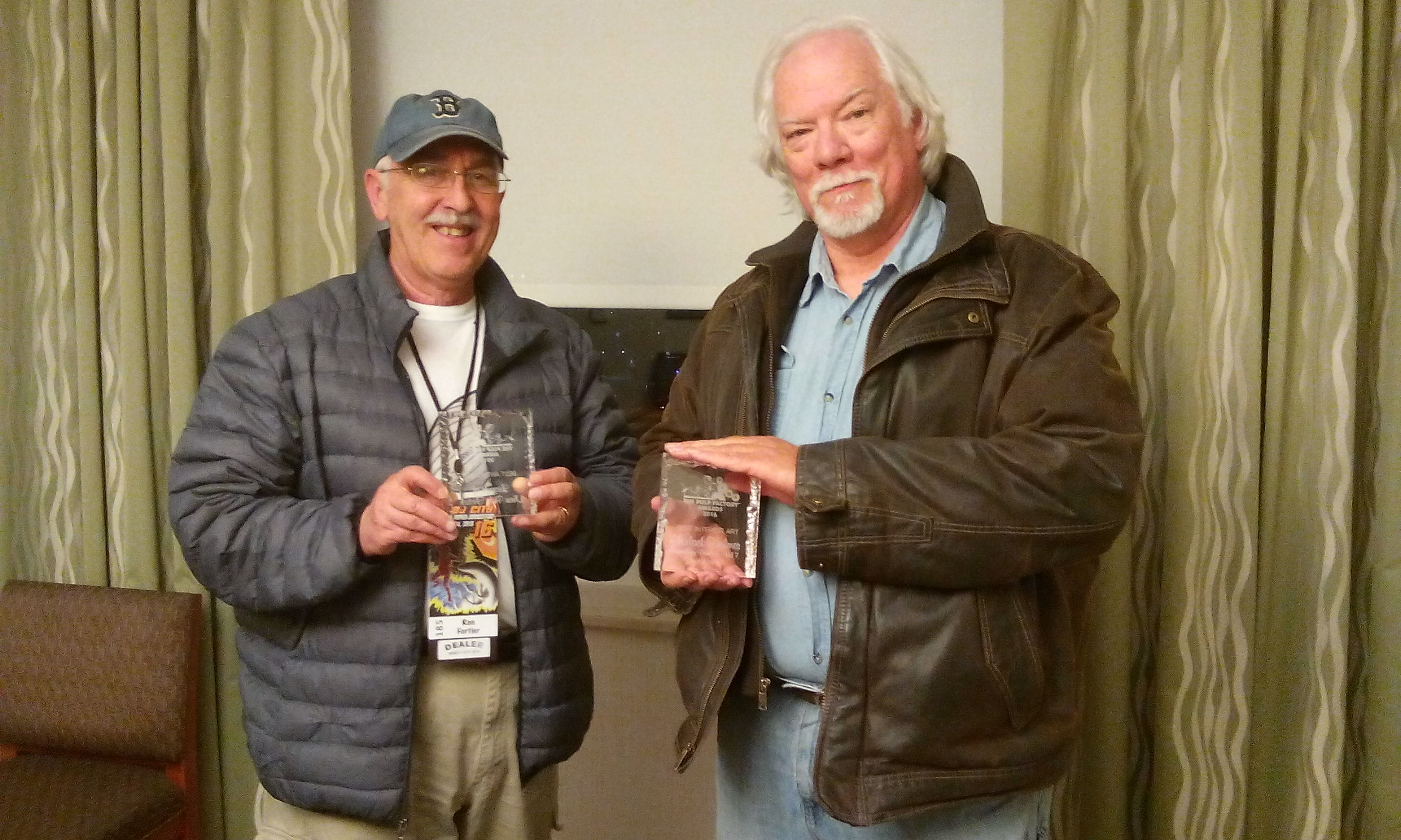 Whereas our own Rob Davis won the award for Best Interior Illustrations for his art in our “Sherlock Holmes – Consulting Detective Vol 7,” it was his second Pulp Factory Award win. Above is the Air Chief holding the award for Best Anthology and Rob proudly displaying his.