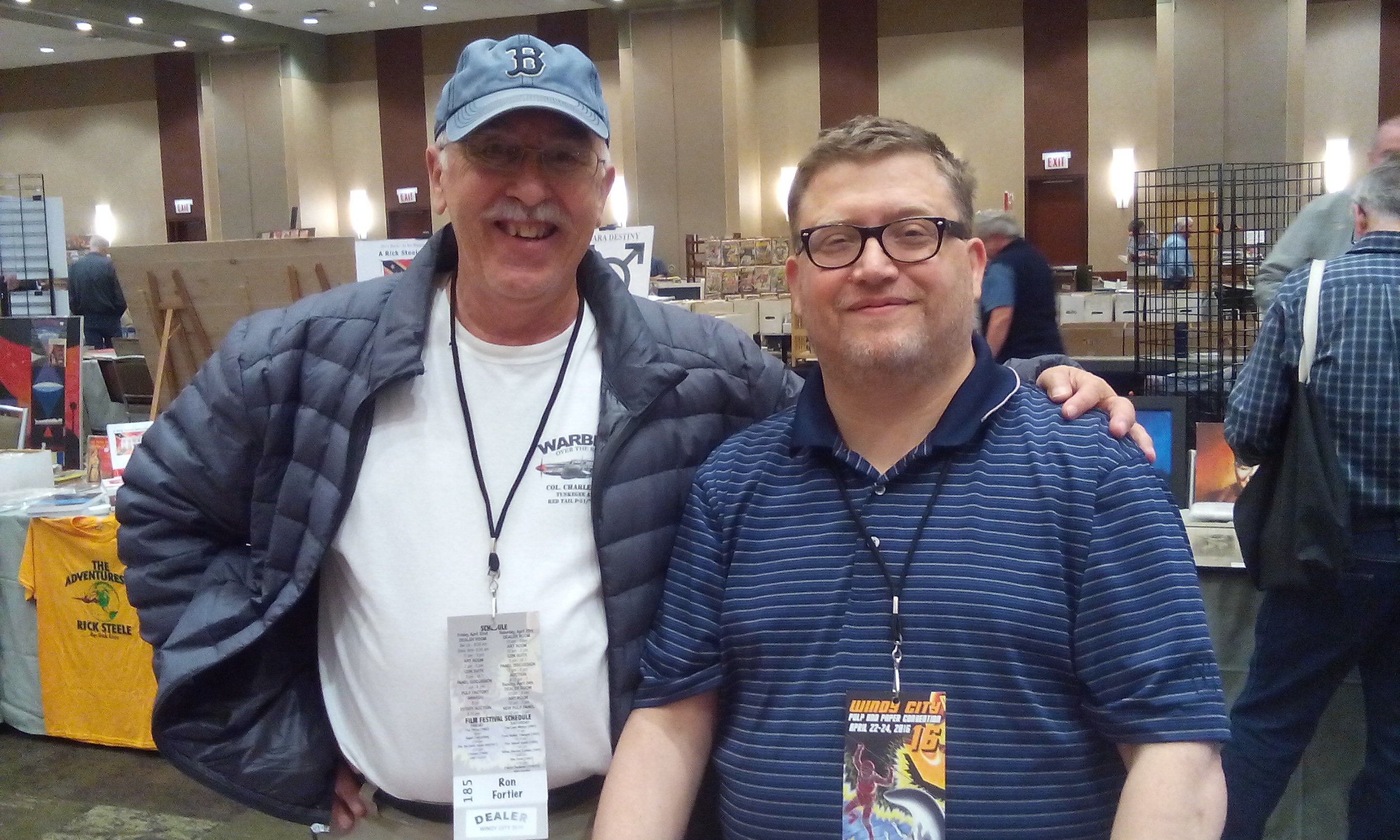 Greetings Loyal Airmen, we’ve got tons of things to share with you this week and all are about our amazing experiences at this year’s Windy City Pulp & Paper Con in Chicago that went on over the weekend. We’d told last week we’d have a full report for you and so sit back and enjoy. Above is Ye Old Air Chief and Art Director Rob Davis having set up our tables and ready for the show to get rolling.