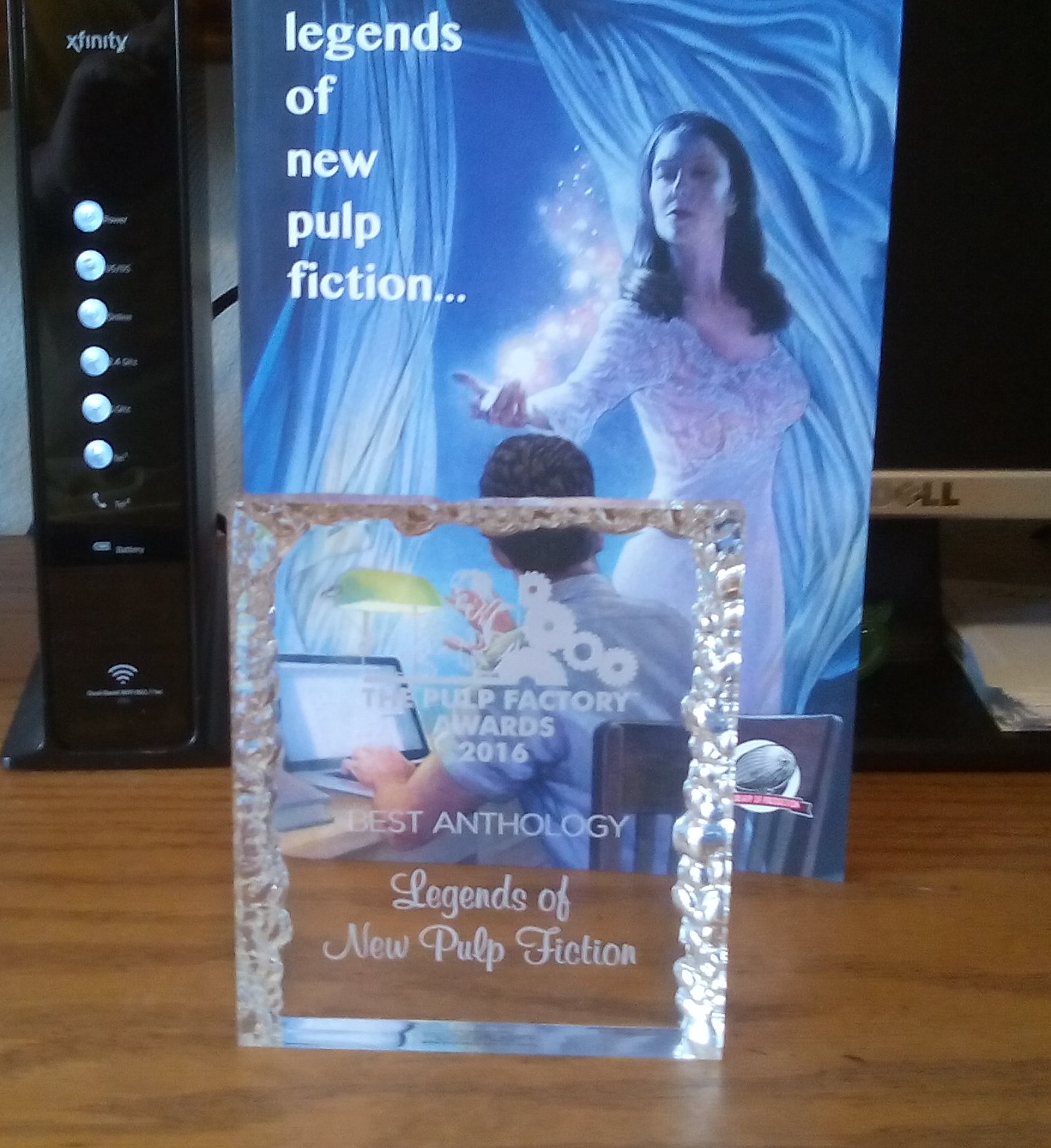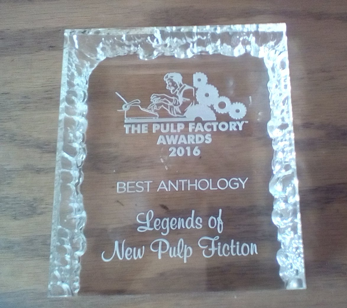 Friday night the 7th Annual Pulp Factory Awards were handed out and Airship 27 Productions took four of the five categories. This year the awards were moderated by Pulp Factory members Gordon Dymowski and Van Allen Plexico and they were responsible for designing the beautiful acrylic awards you see above. Winning Best Pulp Novel went to our friend Paul Bishop for his gripping police mystery, “The Lie Catchers.” Having reviewed it last year, the Air Chief recommends you all go out an buy a copy. It is that good. The book was published by our friends at Pro Se Productions.