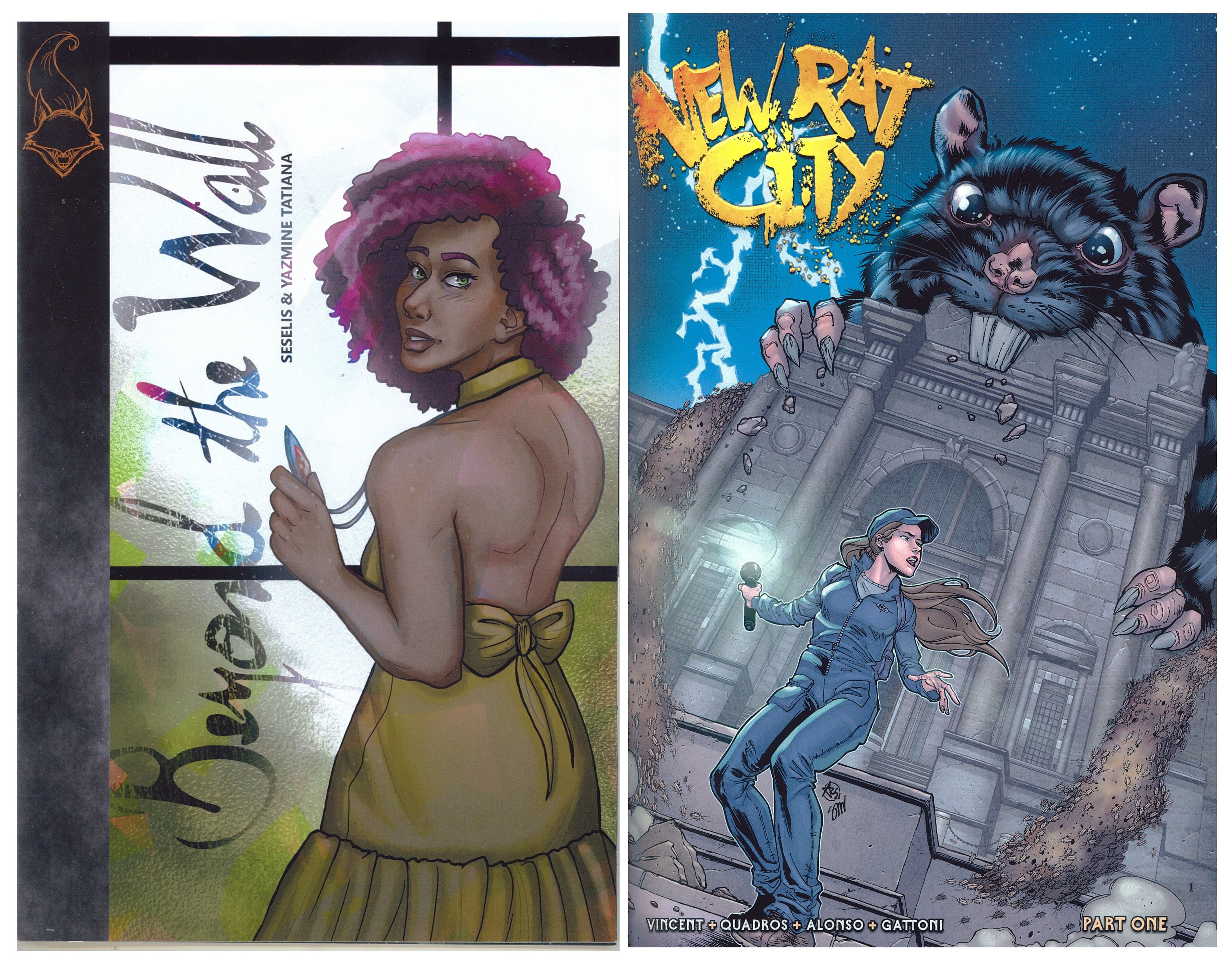 We’ve been saying for many years now that the best comics produced today do not come from the big guys ala Marvel & DC, but rather the self-made comics from new creators. Here in Fort Collins, among our informal Fort Collins Comics Coffee Clutch Crew, two such creators have proven that theory once again. Writer Seselis has been one of the crew for several years now. Recently he and artist Yazmine Tatiana produced a black and white gem called “Beyond the Wall.” It is a wonderful comic, simply told with terrific black and white art. Then just a few months ago, N. Honor Vincent and her husband moved to our little part of Northern Colorado and within a few weeks she was part of our crazy gang of writers and artists. Honor is a gifted writer and her latest example of that talent is the full color two issue series “New Rat City” done with artists George Quadros & DC Alonso. It is simply fantastic. So dear Loyal Airmen, the next time you visit a comic shop or attend a con, go check out the independent titles, we think you’ll be pleasantly surprised.