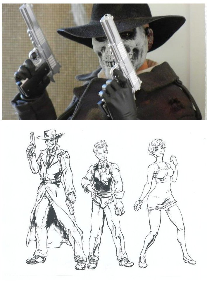 Several weeks ago, after having attended this year’s Rocky Mountain Con, we reported that one of our local artist friends had expressed an interest in taking on our Brother Bones 130 pg graphic novel. Well after several e-mail exchanges, this really talented artist confirmed wanting to take on the project. Above you will see several of his early sketches of three of the characters from the story. He did up about ten of them and the Air Chief will be be posting them here in the coming weeks. We don’t want to reveal the artist identity just yet, as we are preparing an official Press Release which give all of you Loyal Airmen more details in regards to the project. We’ll also be announcing the name of the Editor and putting out a call for a colorist to join this creative team. So stay tuned, lots more to come. Oh, as as for the image of the very awesome Brother Bones custom figure above the drawings, it was done by our pal, expert model maker Jase Marshal.