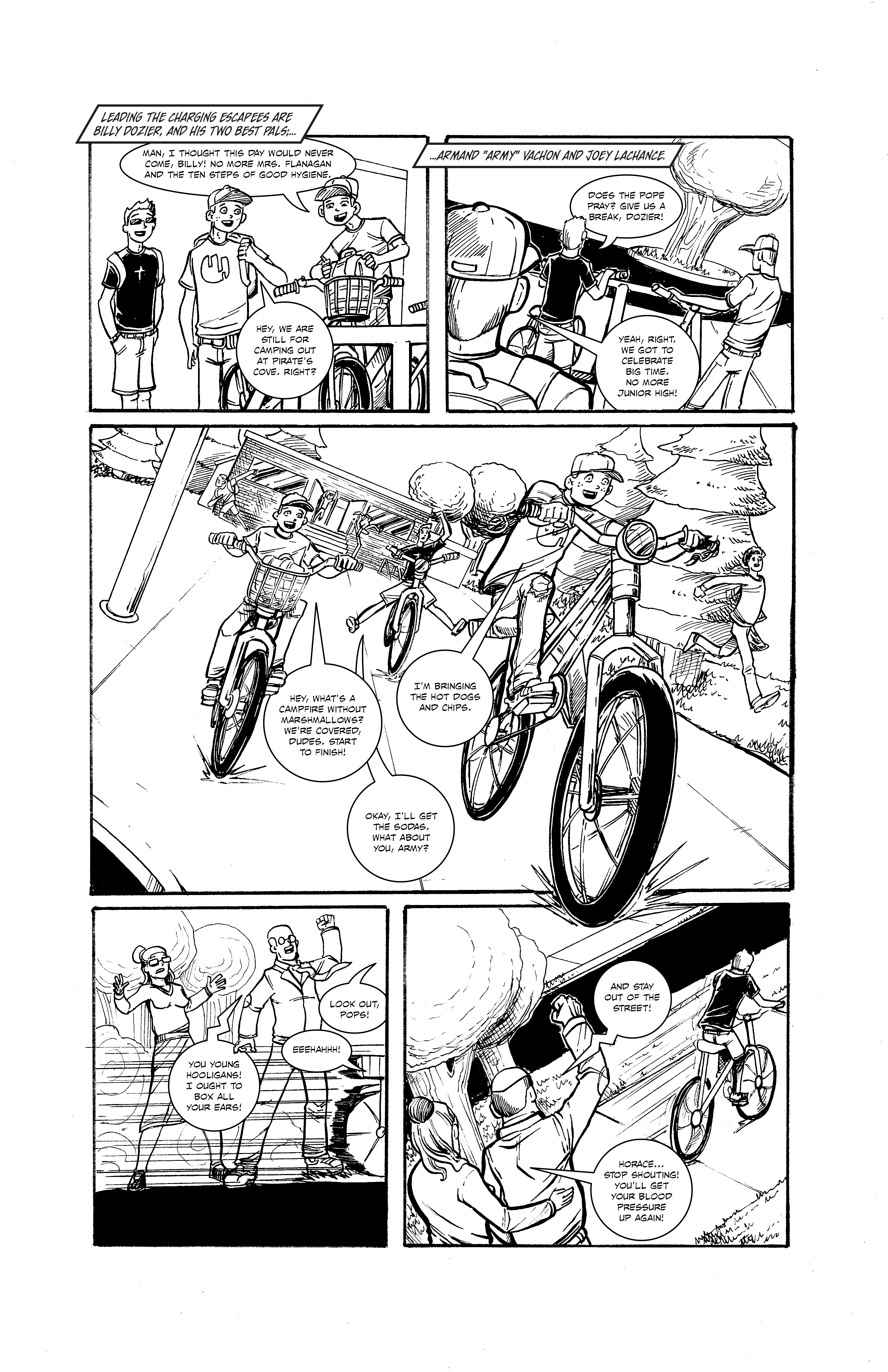 BULLDOZER is a story we wrote ages ago when still living back in New Hamsphire. It is about what happens to three young boys in Maine in the summer between Jr. High and High School and we were thrilled with Jon Bonjour signed on to do the artwork for the project. Then letterer Elisa St. John joined the team and elevated to an entirely new level. When finished, issue # 1 of BULLDOZER will be published Wicked Wolf Pub, the outfit run by our good friend Todd Jones. Will keep you posted.