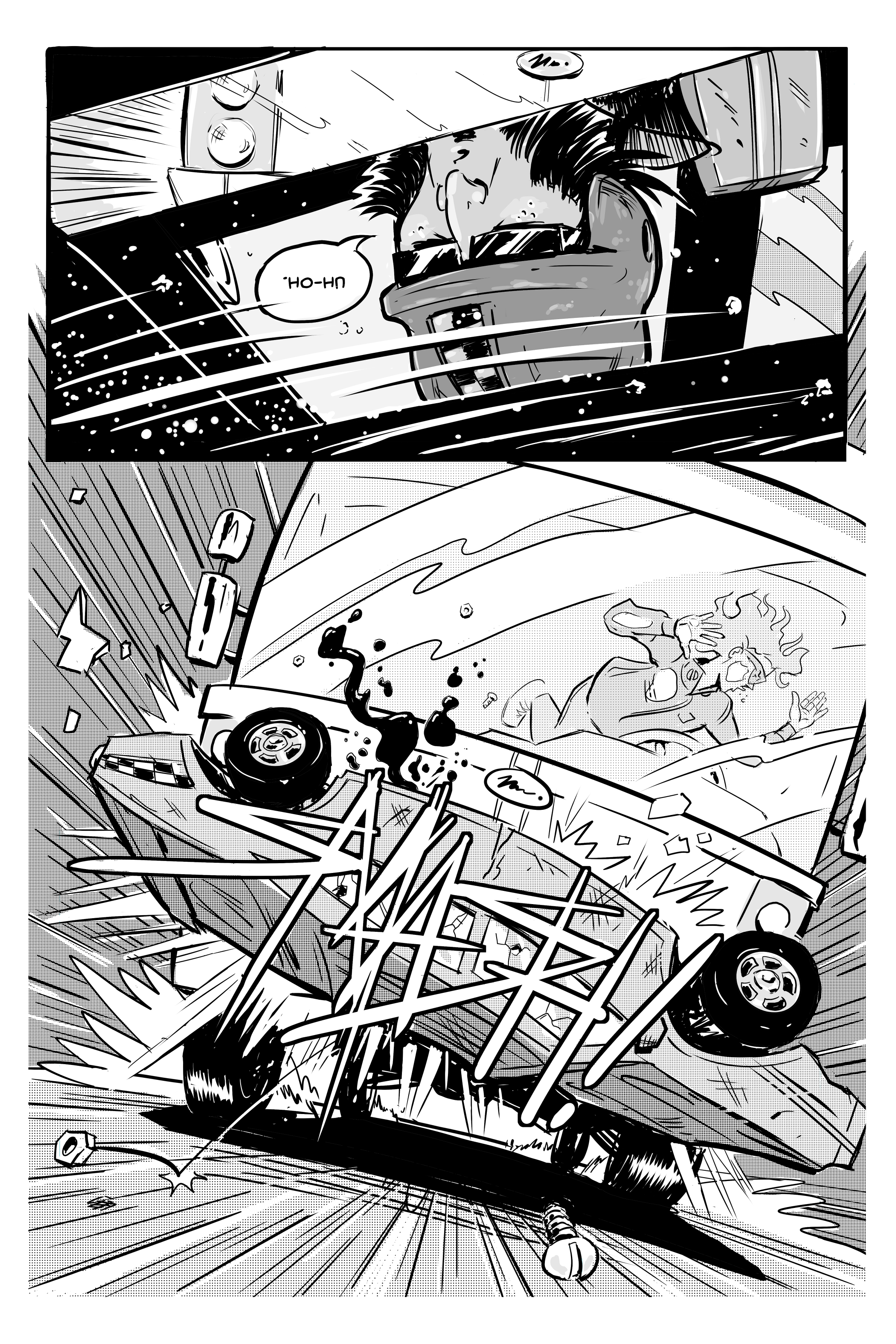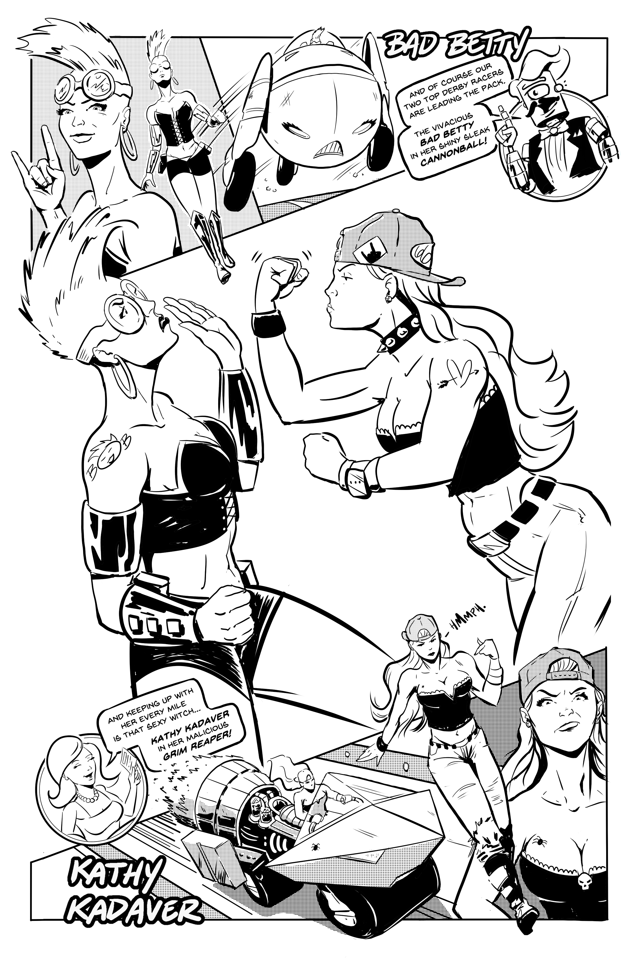 And then we have the stand alone story, DEATH DERBY inspired by Japanese anime cartoon shows. This wild and wacky racing comic was illustrated and lettered by Brian Loner. He took our 9 pg script and turned it into a 14 pg knock-out strip that is just fantastic and fun. You’ll be seeing this in a future issue of RON FORTIER’S TALES OF THE MACABRE.
