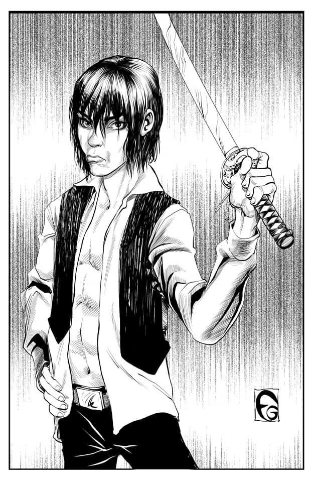 Above to the left is one of his early offerings. The one on the right is his most recent approach to the character of Sammy Jin. You can see how subtle Cesar is making the figure look more real, other than another comic hero interpretation.
