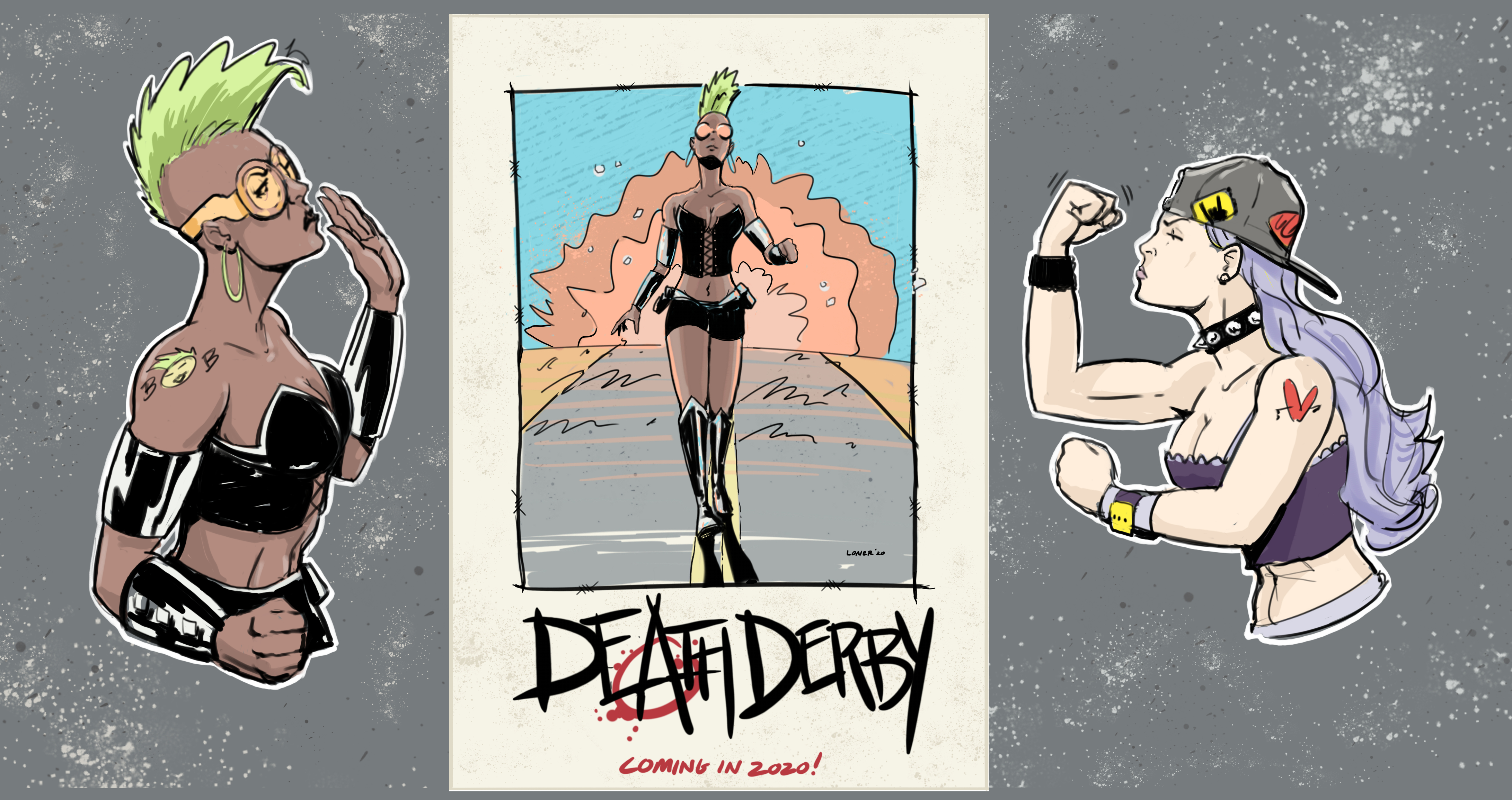 Above is artist Brian Loner’s interpretation of our two main characters and we’re happy to say he’s very much committed to actually completing DEATH DERBY. Note, the illustration above is meant to be a promotional piece, whereas the finished strip will only be in black and white. When finished it will be featured in our continuing anthology comics series RON FORTIER’S TALES OF THE MACABRE. Stay tuned.