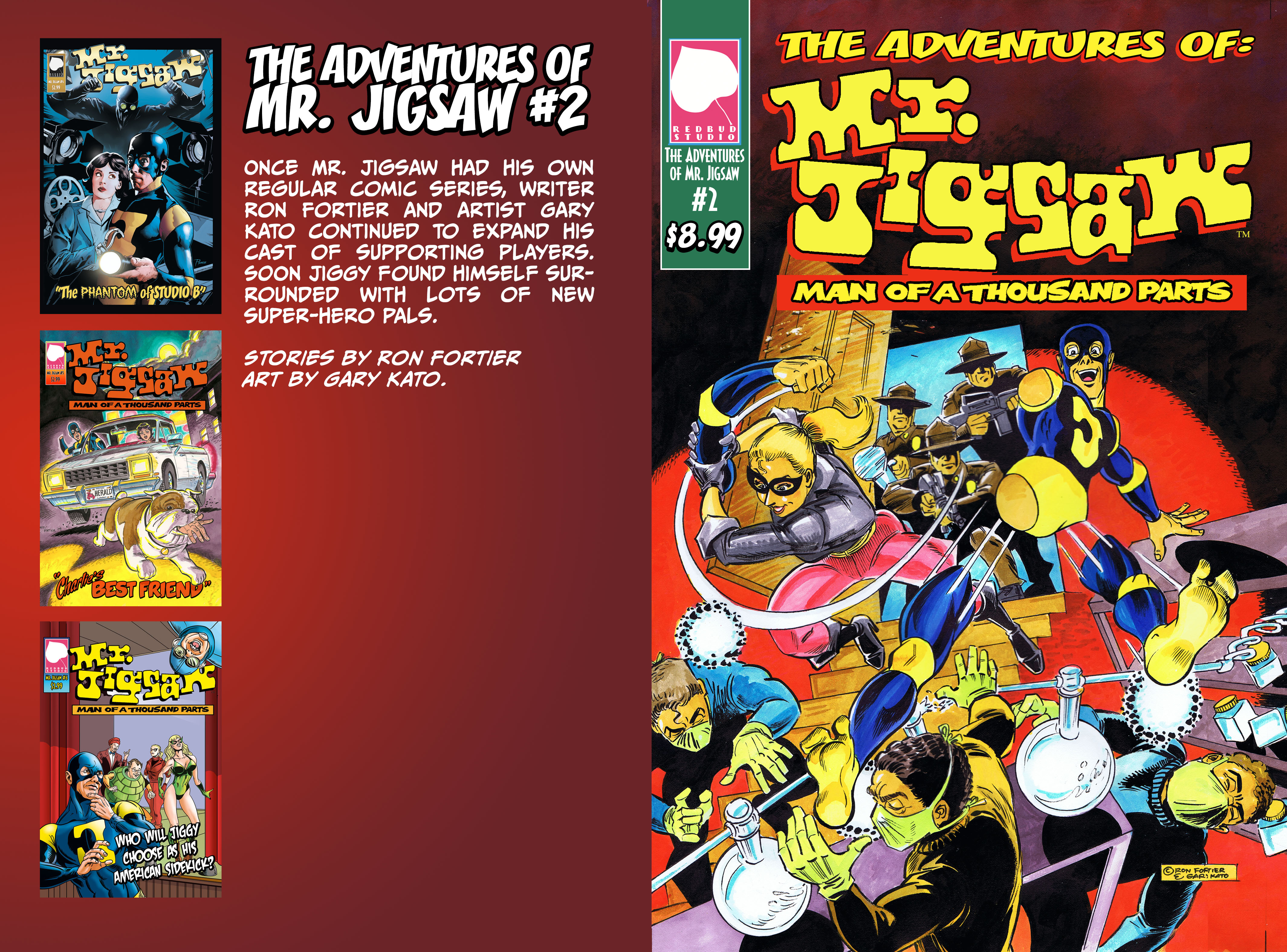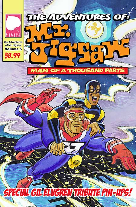 And back to comics we go. A short while after the Air Chief and partner Rob Davis began publishing the Mr. Jigsaw comic book series, we had the idea of doing collected edition. Thus ever three issues of the 24 pg books would be collected. At that time, another outfit named Wild Wolf Entertainment produced what we called THE ADVENTURES OF MR. JIGSAW and sold them at Amazon. Eventually Rob’s own Redbud Studio comics took over and recently, during our last Airship 27 Podcast, the subject came up about these ADVENTURES titles. We agreed it was time to go over them and correct any mistakes or omissions and eventually do a firth volume containing issues 13 – 14 – 15. In the past few days Rob has started on this. Above is the new Redbud edition of issue #1.