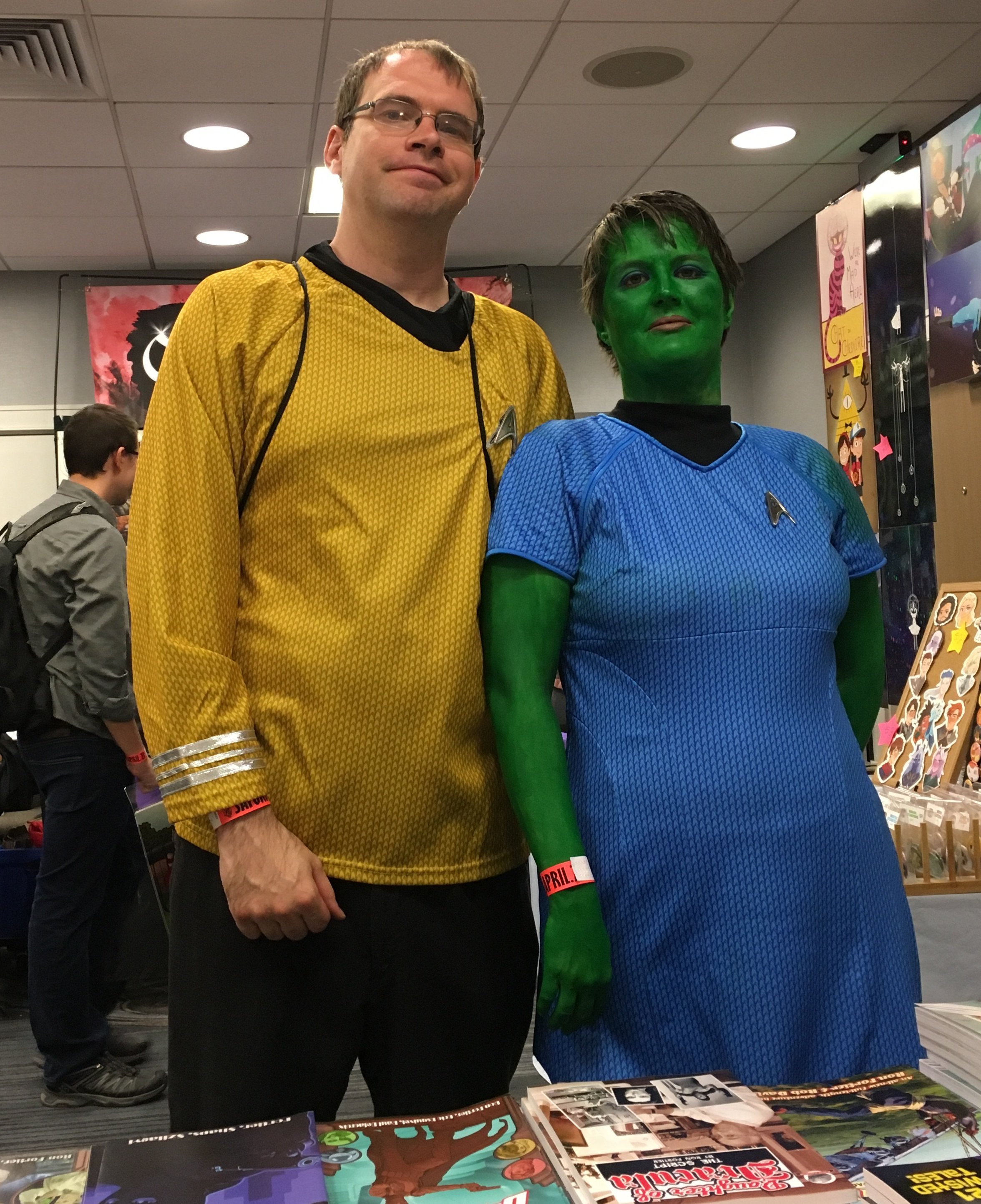 We had the Mad Hatter and the Rabbitt from Alice in Wonderland and via the good starship Enterprise, this two crew members, one a green colored girl.