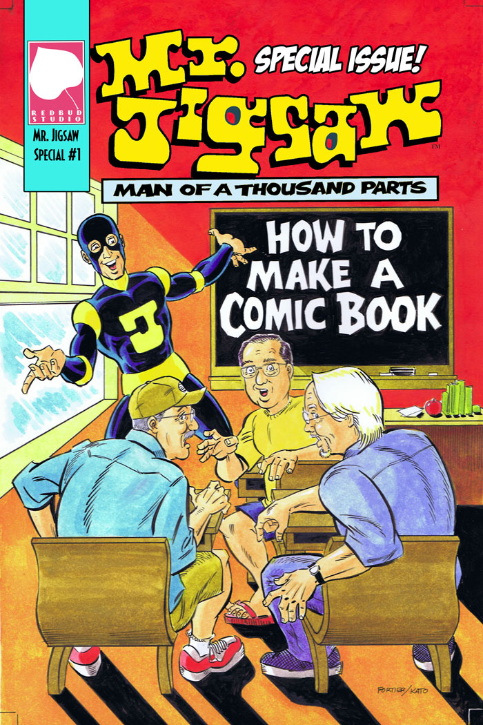 Of course you can’t go to a con without something unexpected happening. On the second day of the show a fellow walked past our table and he spotted our Mr. Jigsaw Special – How to Make a Comic Book. He stopped in his track, pointed down at it and asked, “Did you write this?” After replying we were guilty as charged, he came over and began shaking our hand enthusiastically. His name is Mike and for a long time he had wanted to learn how to write comics. A little over a year ago his wife went to a con where the Air Chief was a guest and picked up a copy of this how-to comic for their daughter who loves to draw. Mike was totally unaware of that until one night he saw his daughter with the comic sketching away on a new project. He picked up the comic and flipping through it saw where we actually have a ten page comic script printed with between the strip pages. Realizing this was exactly what he’d been after, something to show him the proper format for writing comic scripts. Using the comic as his guide he then began writing lots and lots of scripts; several of which he has now gotten a local artist to start drawing. Thus Mike, thanks to our little comic, is fulfilling his dream of becoming a comics writer. Which is as good a time as any to remind all you Loyal Airmen, that comic is available at Amazon.