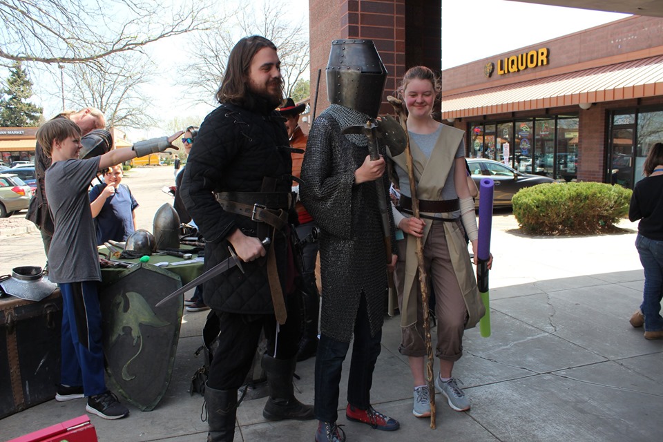 Events like this requiring lots of hard work and nobody works harder than shop owner Liana Sanders and her husband Sherman. She was right there first thing Sat. greeting all the excited customers, handing out pins and organizing a colorful group of knightly cos-players.