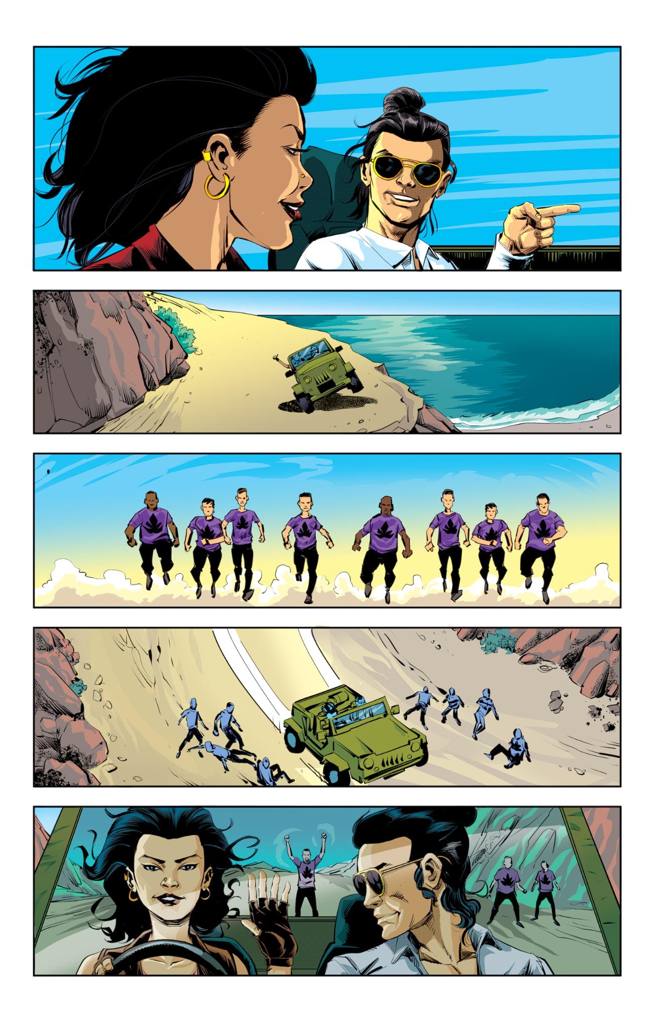 Artist Cesar Feliciano and colorist Matt Webb also kept very busy with great new pages like the one above for the our modern day spy thriller, JIN & TONIK. In a recent post to the team, Cesar let it be known how anxious he is to have this issue wrapped up and off to all our fans.