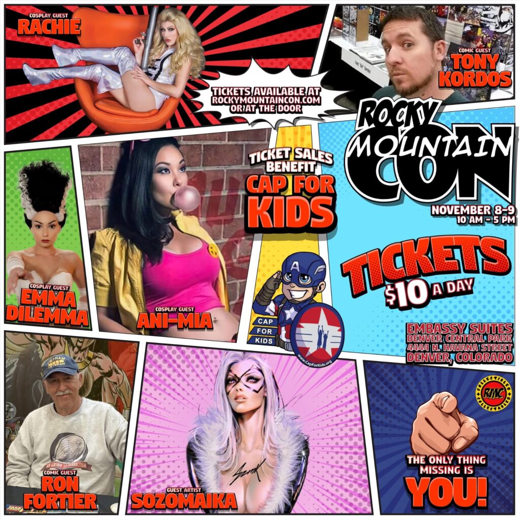 Don’t look now, but in one more week, it will be time for the Air Chief’s favorite con, the Rocky Mountain Con, held in Denver and put on by our dear friend Tim Moret. We’ve been a steady guest at this fun show since it began and look forward to it every year. So…if you happen to be anywhere in the Denver area on the 8th & 9th of Nov, come on down to the Embassy Suite and check it out. You’ll be glad you did.