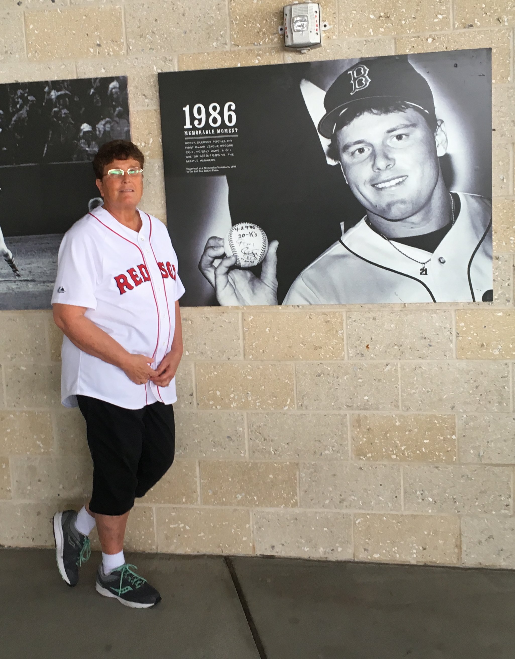 The park itself also has some really cool features including a statue of retired slugger and Fenway favorite, slugger David “Big Poppi” Ortiz made entirely of Leggos. Then when Val saw this poster of ace pitcher Roger Clements, she just had to have a pix with it. Baseball season opens officially on March 29th and our beloved Sox will be back in Florida to take on their division rivals, the Tampa Rays. GO SOX!!!