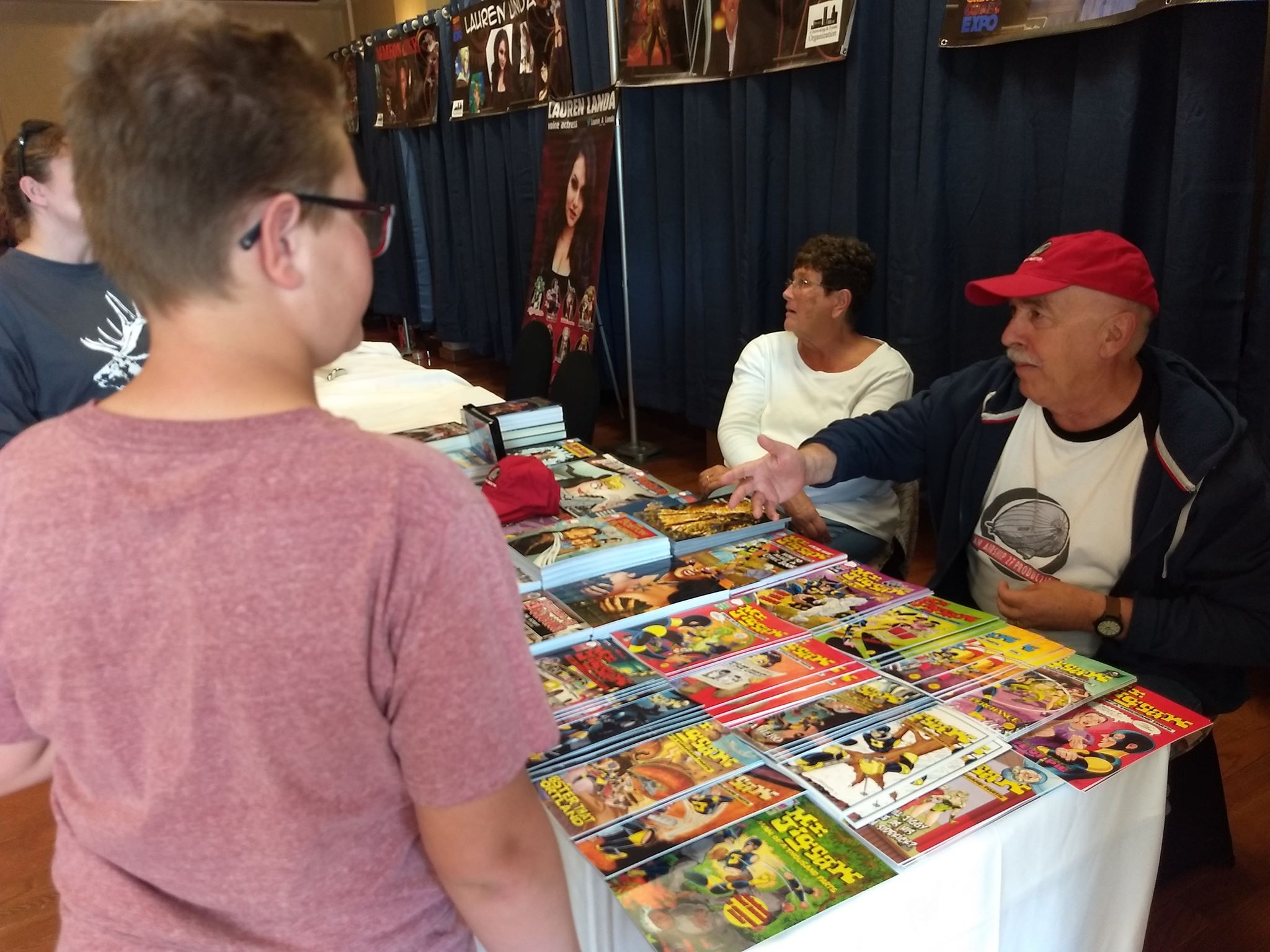 As you can see by the con picture above, we were kept pretty busy during the entire show. We love to look back and see what the big sellers were at the shows we go to. This time the most popular of our titles were the new Sherlock Holmes anthology from Australia in which the Air Chief has a story. Then the Mr. Jigsaw How to Make a Comic Special went over big. Lots of people, both you and old want to learn the mechanics of comics.