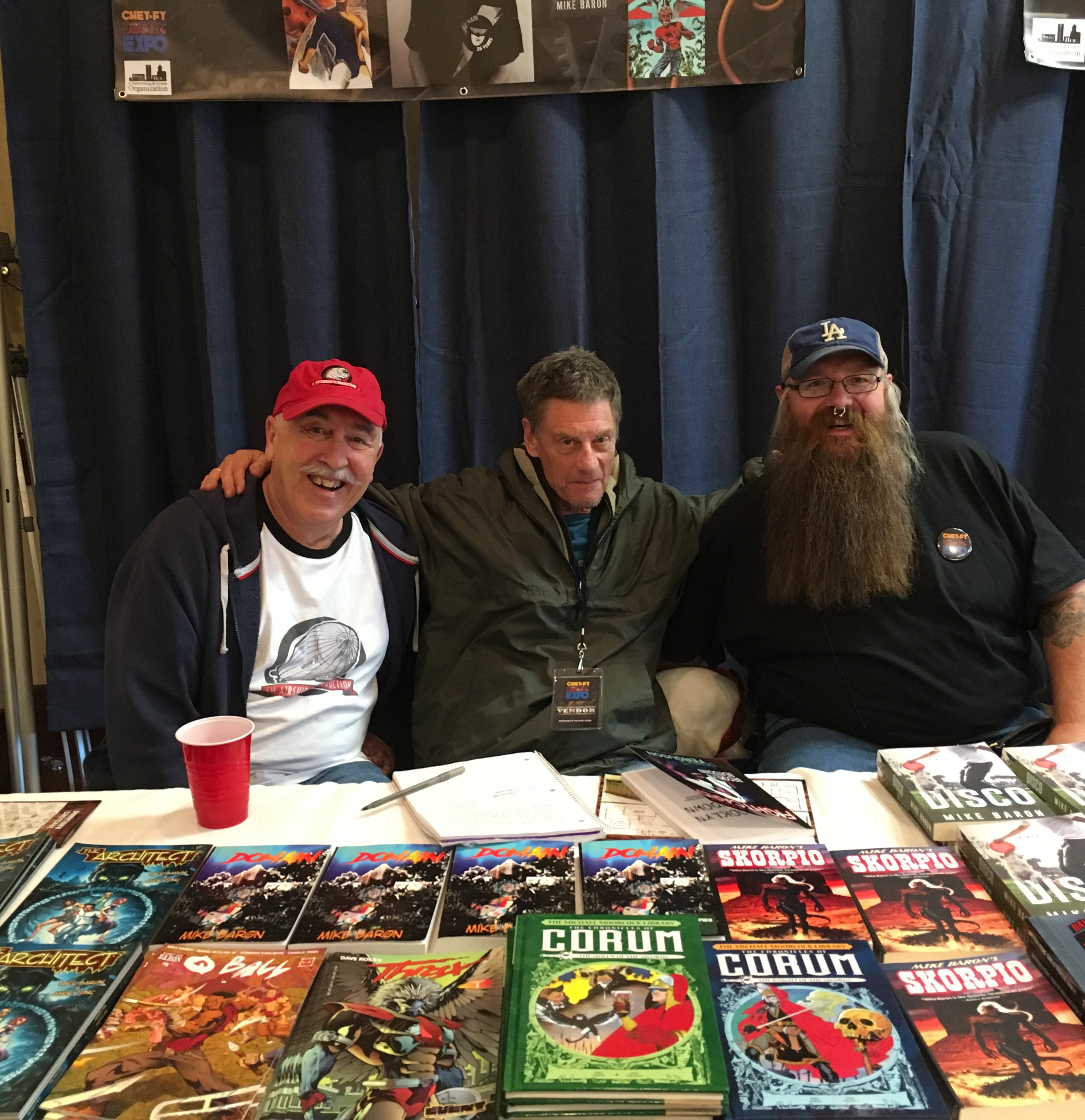 While back the con things were moving into high gear fast. At upper left is the Air Chief, writer Mike Baron and con director himself, Jon Puls. To right of course is our dear friends from Pulp Fission, Zane & Olivia DeGaine.