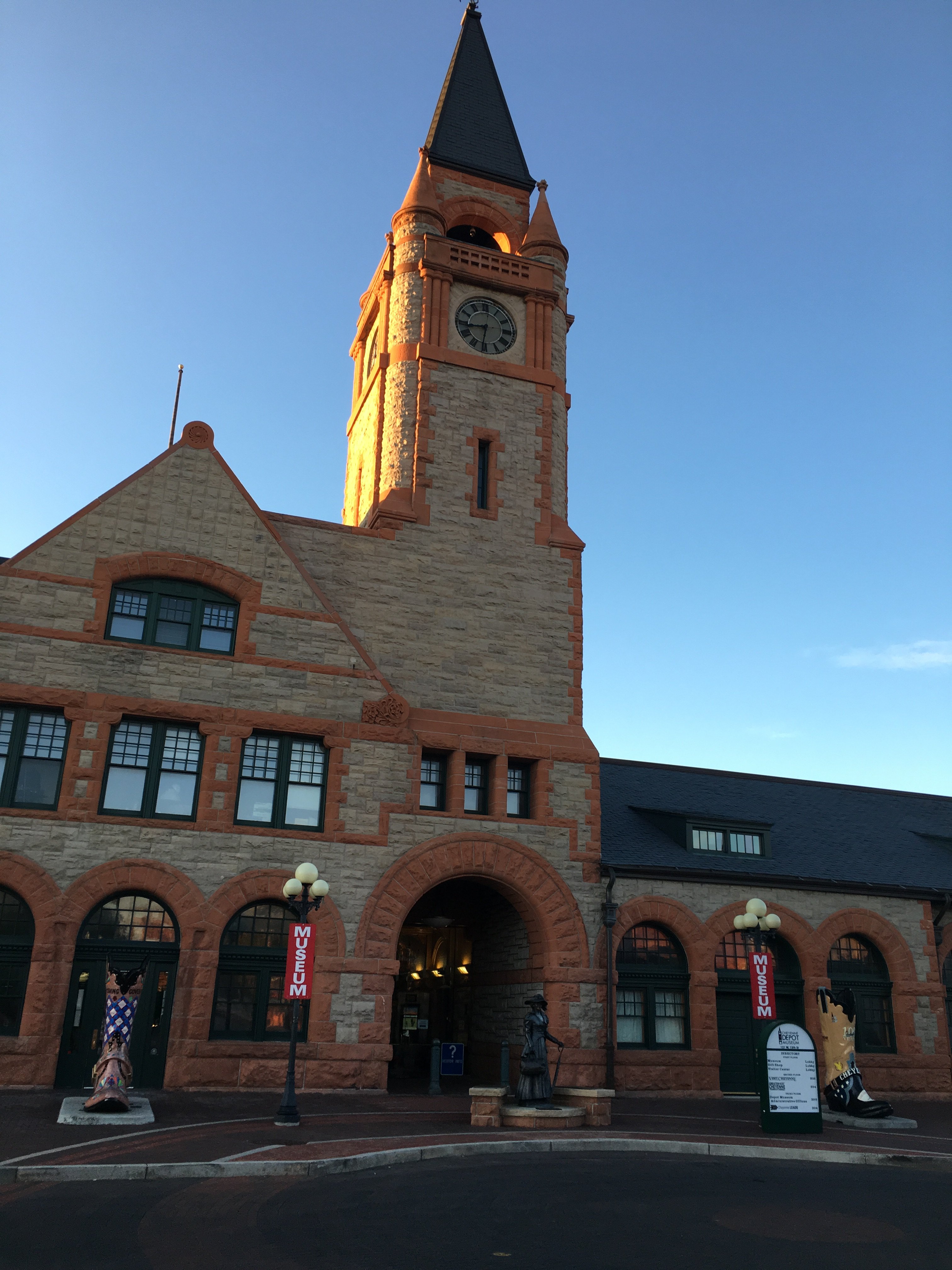 The Plains hotel is across the street from the landmark train station with its gorgeous clock tower. There were also lots of these get giant boot sculptures depicting elements of Cheyenne’s western history.