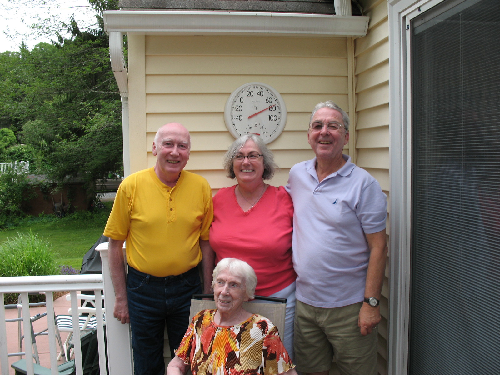 Last week the Air Chief’s family all got together and the only ones missing were Valerie and the Air Chief.  Our baby sister Ann (in the middle back) has traveled back to New Hampshire with her husband Norman to visit relatives.  To the left in the yellow shirt is brother Paul (youngest of we three boys) and to the right in the light blue shirt is George, the second after the Air Chief.  This gathering took place at George’s home in Massachusetts and we were thrilled they were all able to convince Mom (seated) to go.  She rarely leaves her senior home back in Dover, NH. these days. But hay, at 91, she has that right.