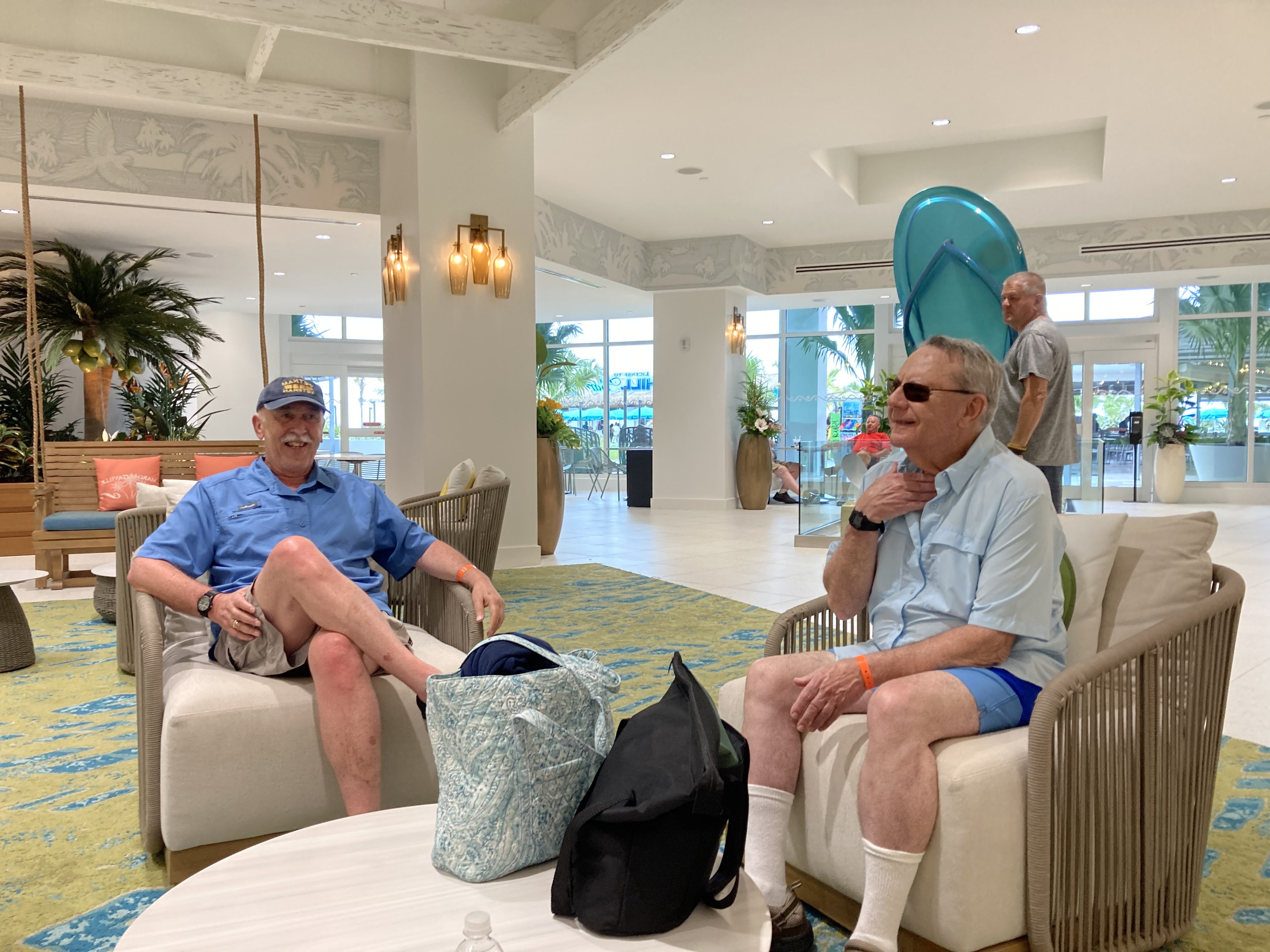Fort Myers has a lot to offer tourists including the Edison & Ford estates where both men built beautiful winter homes and brought lots of attention to what was once a small Florida village. Above is the Air Chief and Val. To the right the Air Chief relaxes in the lobby of the Margarita Hotel on the beach.