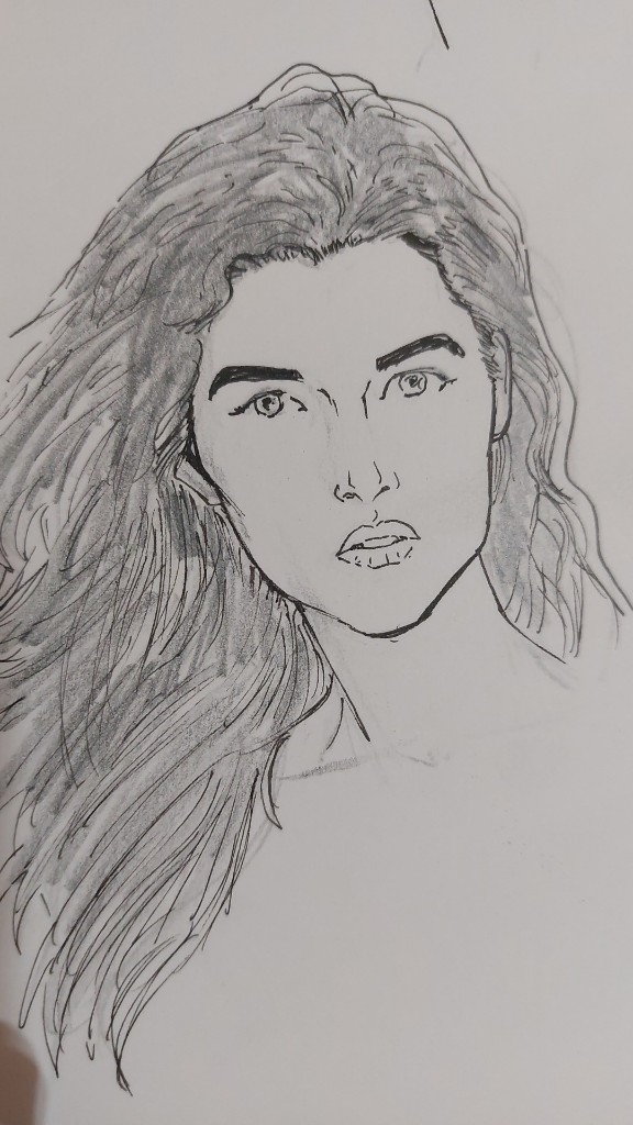 We are thrilled to inform you that Florida based artist Javier Lugo has begun work in earnest on “Chivalry Inc.” This is another one of those projects we created decades ago about a female private eye that for one reason or another simply could not get off the ground, though several super talented artists worked with us on it in the past. Now Javier is on board as is Silverline Comics which will be published the mini-series. Above is the symbol for Valerie Chevalier’s agency, Chivalry Inc. “For People in Need.” A sketch of Valerie and the roughs of pg # 1 by Javier. Yes, Loyal Airmen, we are really excited about this one. Look out 2024, here comes Chivalry!