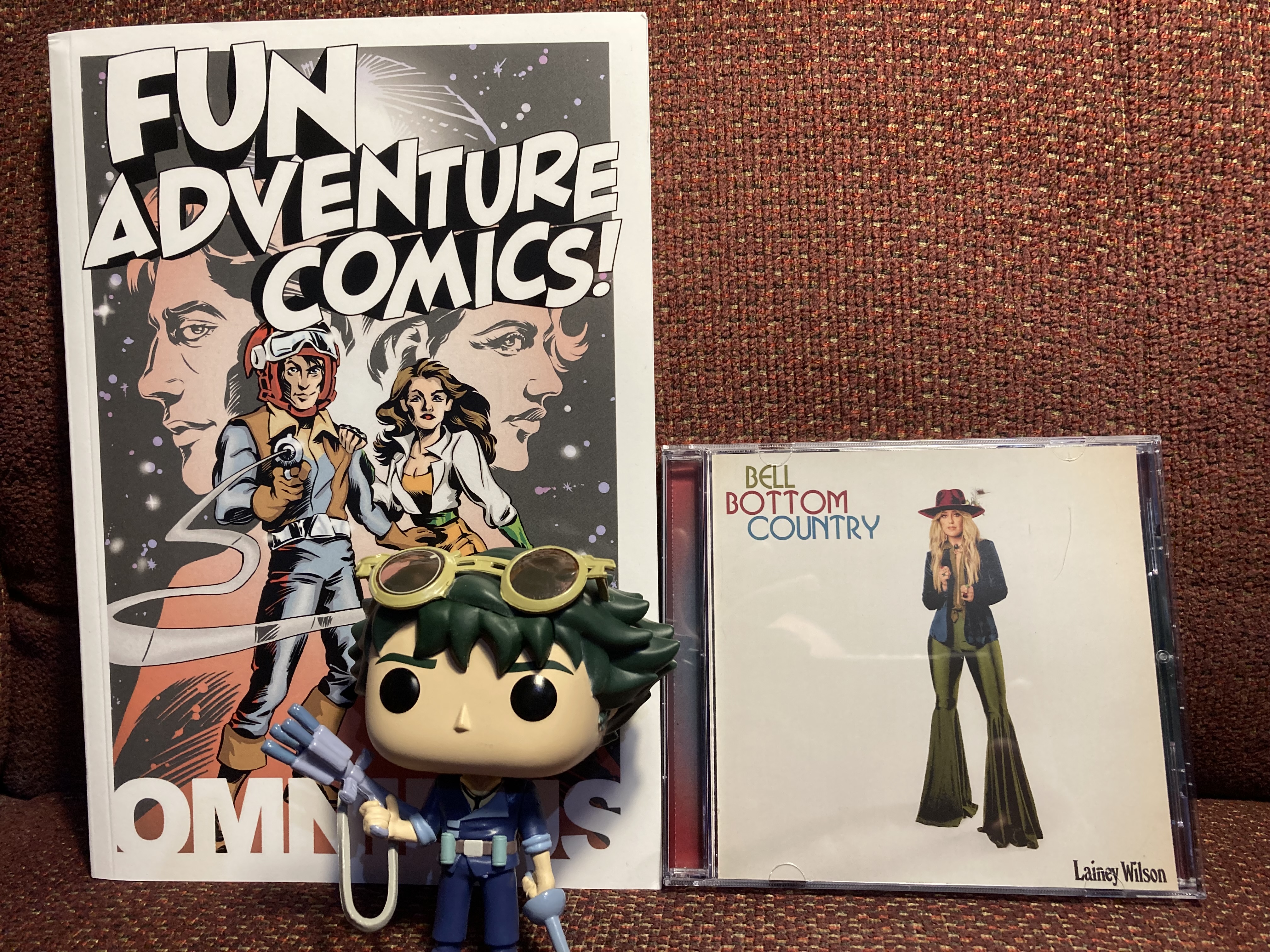 Greetings Loyal Airmen, we hope all of you had a truly wonderful Christmas. We are writing the start of this Flight Log the day after and wanted to share a few little bits with all of you. As ever we received lots of beautiful, loving Christmas cards whereas the one that made us laugh aloud arrived from son Scott, which you see above left. Too funny Scott. And if you’re at all curious as to what Santa brought the Air Chief, there were lots of great Amazon gift cards which we appreciate so much, being the avid reader we are. Then on opening gifts under the tree there indeed were several fun surprises like the Lainey Wilson CD Album, “Bell Bottom Country.” Her song, “Heart Like a Truck” is one of our favorite the past few months. Then we received a new Funko Pop, this one of Spike Spiegel from the classic anime series “Cowboy Bebob.” While over the years the Air Chief has contributed a half dozen comic strips to pal Warren Montgomery’s comic series, “Fun Adventure Comics.” Well, Warren collected all of them in one huge omnibus and someone in the family saw it on or Amazon wish list. Oh yeah. Way to go Santa. We hope all you Loyal Airmen also received some wonderful surprises as well.