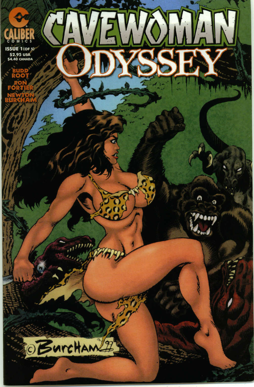 So we are digging through the image files on very old CD disc this past week when the Air Chief stumbles upon the cover above…and started wondering what it was? Obviously it has our name on the cover, but boy are the memories vague. Seems like ages ago, the late publisher of Caliber Comics, Gary Reed, approached us about writing a series of Cavewoman issues. Cavewoman was/is the brainchild of comic creator Bud Root and at the time, very, very popular. So we said,”Sure, why not.” We established a correspondence with Bud which led to the both of us agreeing to go to a Monster Convention in Baltimore that year. We shared a room and got to know each other. The other thing we remember about that show was finally getting to shake hands with the great Forrest Ackerman of Famous Monsters of Filmland. Then some time after our return home to New Hampshire we apparently did write a script which Gary then had an artist named Rick Burcham illustrate it and that’s it above. Dang, but we have absolutely no recollection of the script itself or if we even have any copies of this comic. All too weird. Guess we’ll have to go digging into the boxes one of these days. It’s what happen when you’ve written as many scripts as we have. Hmm, we wonder. Any of your Loyal Airmen remember this one at all?