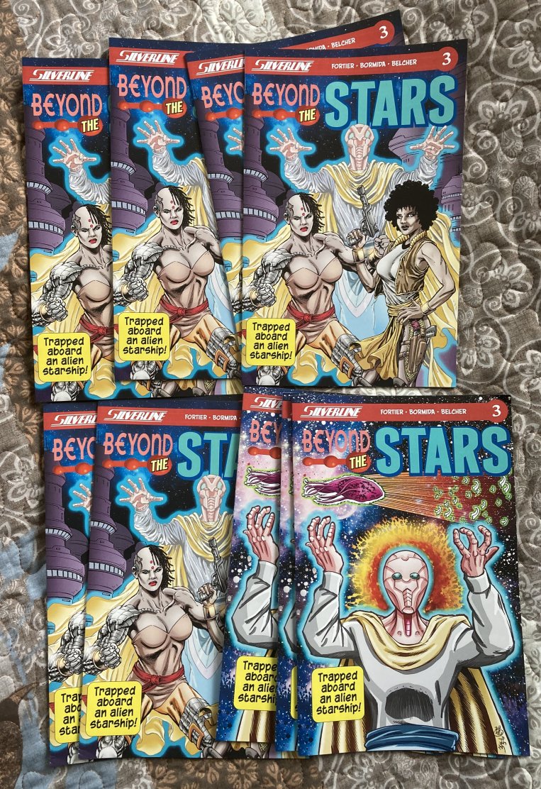 We were also thrilled this back week to receive our copies of BEYOND THE STARS # 3 after a bit of a delay. The book looks fantastic. With its release, we are now officially half-way through this six part mini-series. Kudos to the amazing artists Andrea Bormida and Mike Belcher. Thanks guys. And as you Loyal Airmen can see above right, that’s Pg 10 from Issue # 4 now in progress.