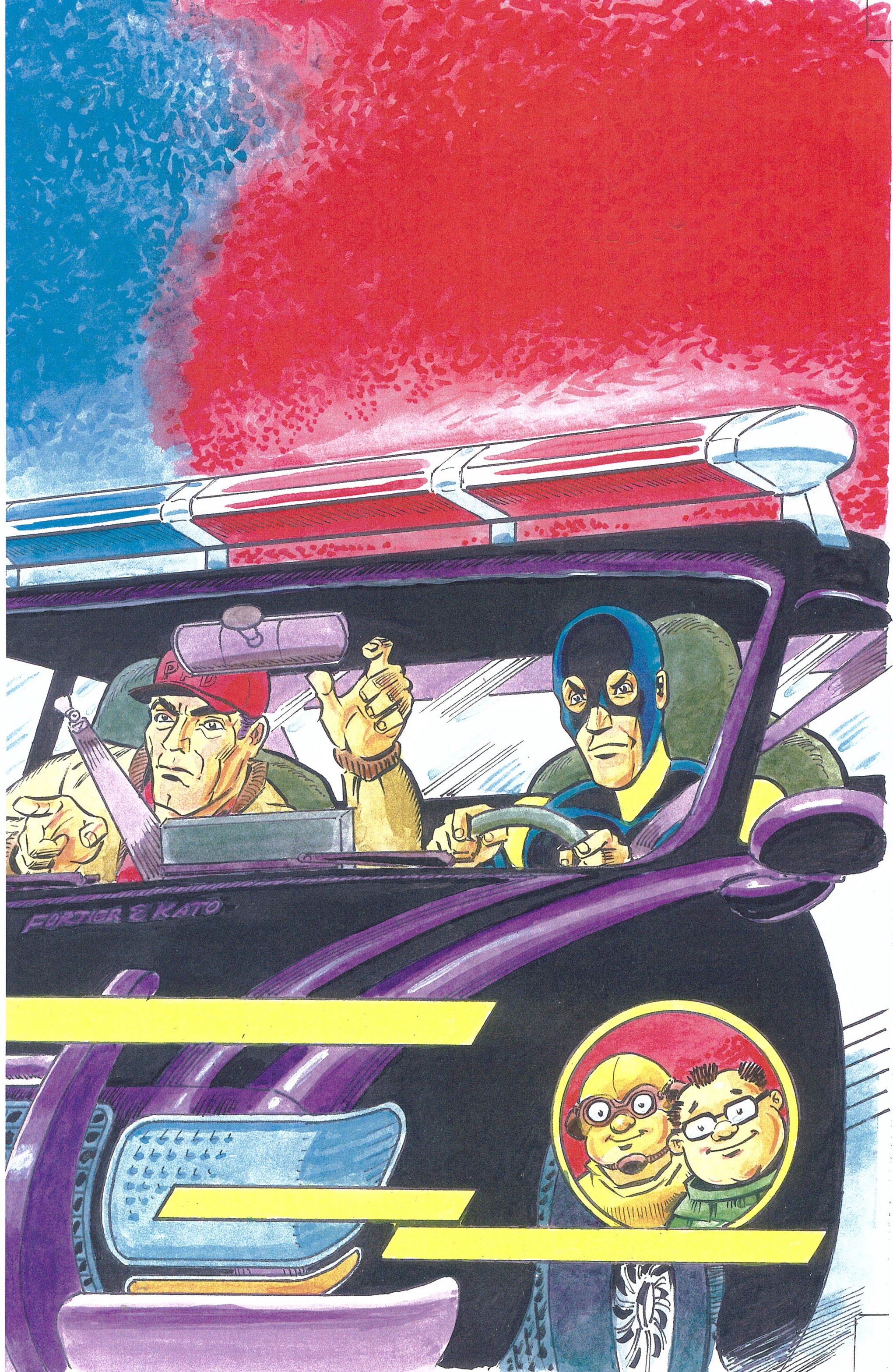 People like our good friend, artist Gary Kato who just wrapped up his work on the newest issuse # 16. Above is the start of the cover before Art Director Rob Davis adds the logo and other text. Seen here are Jiggy behind the wheel and his pal, Portland Police Detective Lt. Boltz…and we won’t say too much more, only that this issue features an 8 pg back story starring two of Jiggy’s pals, Blimp & Turtle. It was written and illustrated by our pal Jon Bonjour and lettered by the amazing Elisa St. John. We think all our Jiggy fans are going to get a big kick out of this issue. We’ll keep you posted.