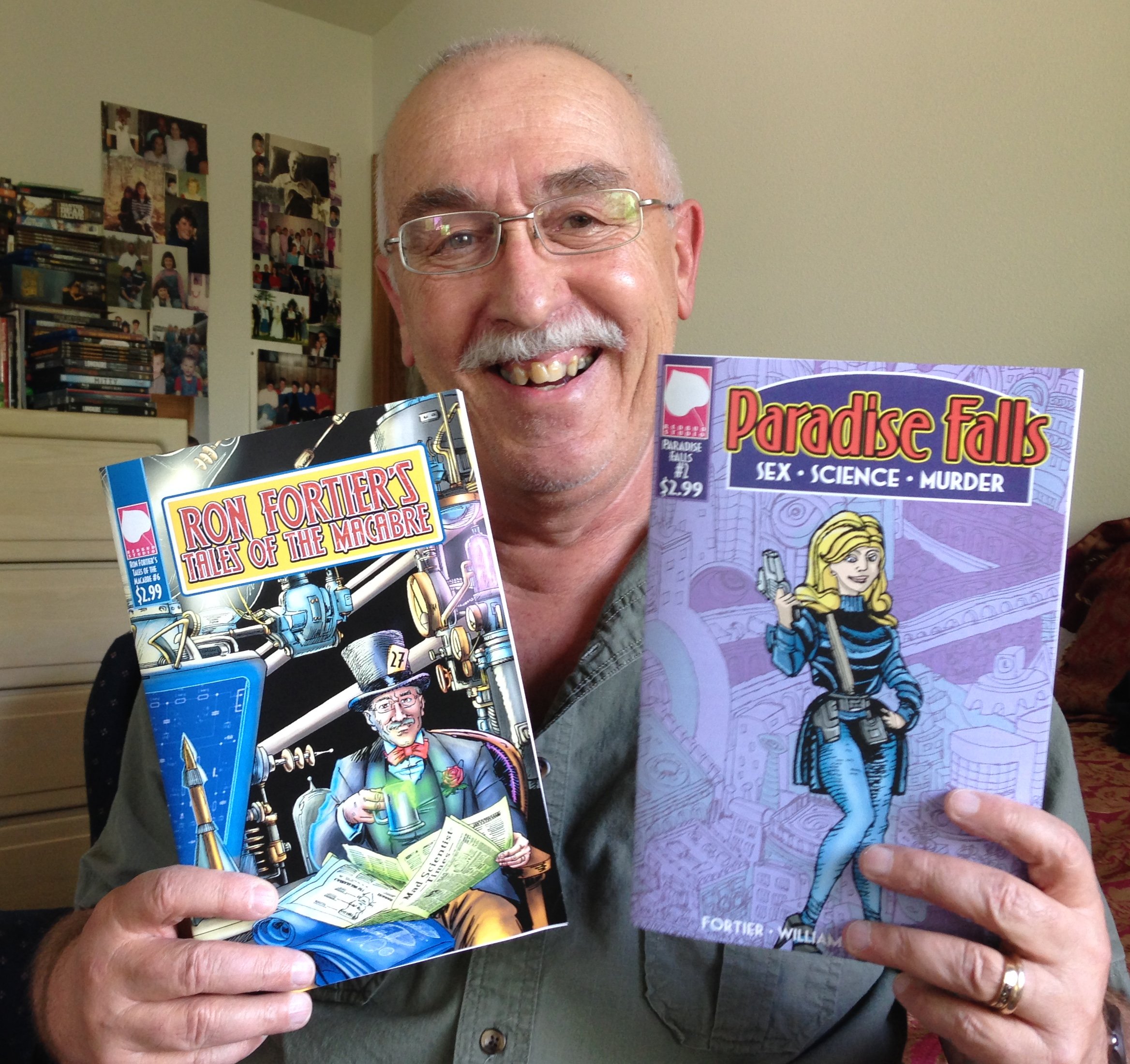 And of course it is always great when our new comics arrive in the mail as was the case earlier in the week.  Here we are holding up copies of “Ron Fortier”s Tales of the Macabre.” This one contains three brand new stories by yours truly with art by Gary Kato, Sam Salas and Kurt Belcher.  Then there was “Paradise Falls,” our sci-fi murder mystery with artist John Williams and letterer Warren Montgomery. Both are available on-line from (www.IndyPlanet.com) As ever, thanks for your support.