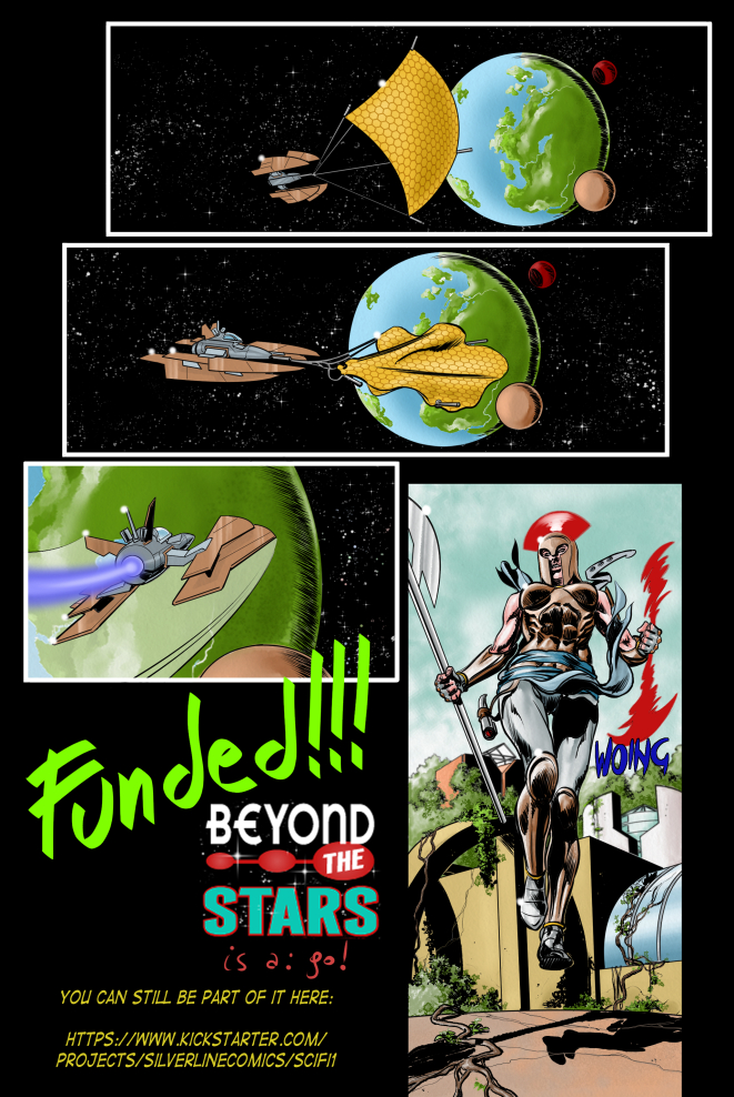 Those of you who follow this Flight Log know last we reached our Kickstarter Goal for our new comic BEYOND THE STARS # 1 being published by Silverline Comics. It was so amazing to see just how love and support we received for this project and on behalf of the entire BTS team, yours truly and artists Andrea Bormida and Mike Belcher, THANK YOU from the bottom of our hearts and God bless you all. As planned, published comics will beginning shipping to people in July. No worries, we’ll totally keep you all posted.