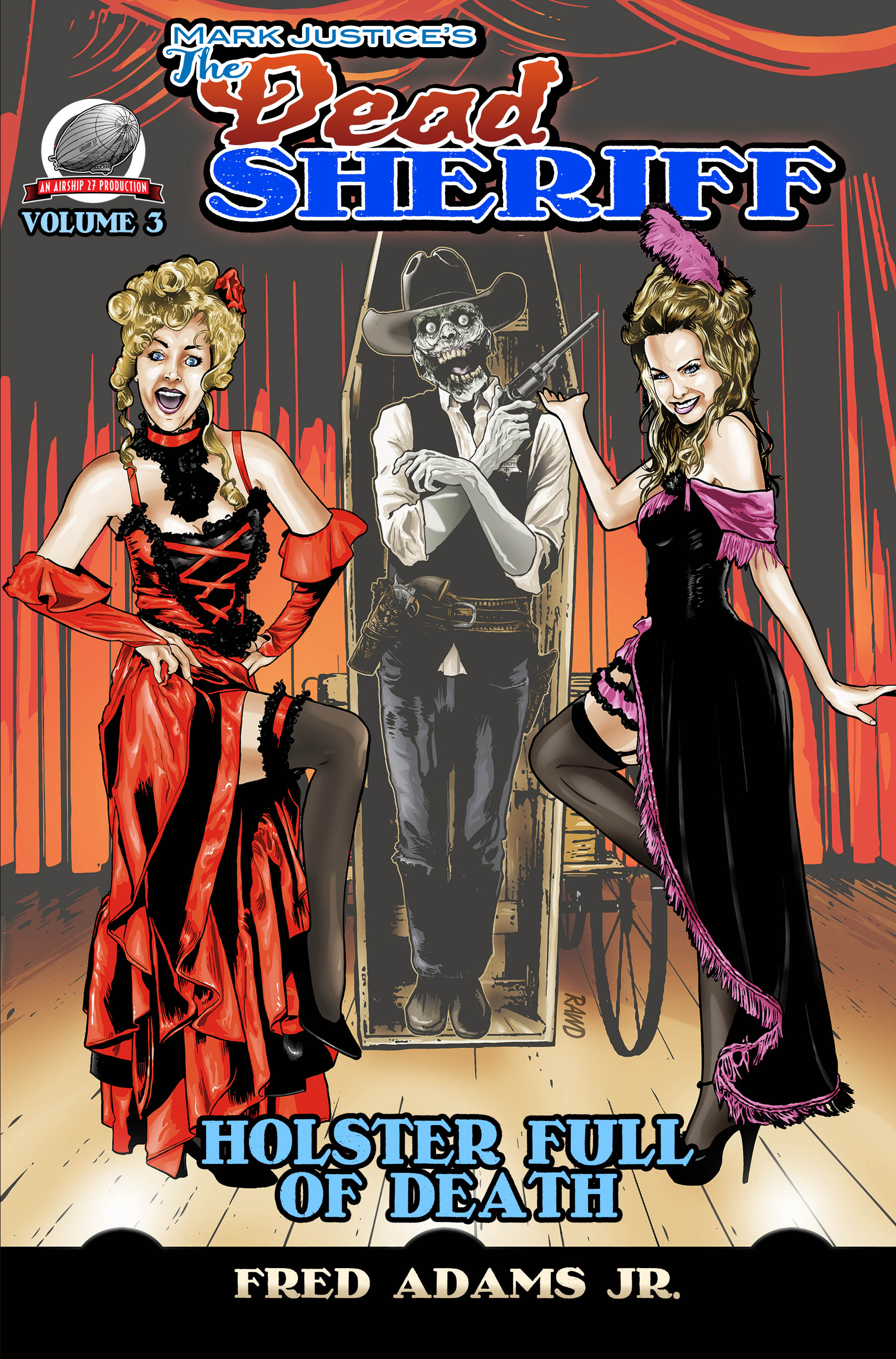 As most of you know, Mark Justice was a talented genre writer and radio personality from Flatwoods, Kentucky. Several years ago he wrote a weird western novel called THE DEAD SHERIFF – ZOMBIE DAMNATION. A year or so after it had been published, Mark reached out to us asking if we’d be interested at Airship 27 in doing our own edition of that book and then continuing the series. We were thrilled with the idea and agreed to it. Then within months of all this, Mark passed away suddenly leaving all of us in shock. After a while, his wife, Norma Kay, reached out to us asking if we were still willing to go ahead with Mark’s wishes. You all know the answer to that question. Above is an image of the first Airship 27 Dead Sheriff book. We were so happy to fulfill Mark’s wish.