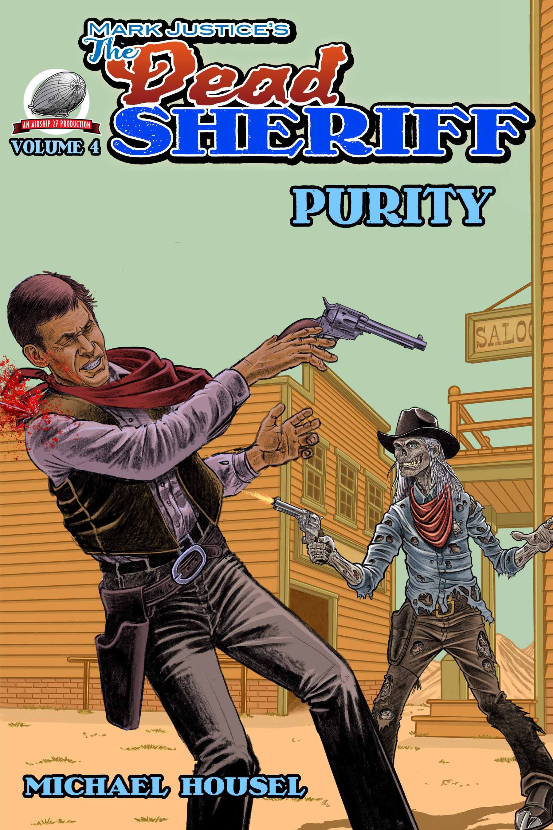 Well, having established an on-going series, it was time recruit another writer with the chops to handle these weird characters and this time we tapped Michael Housel. Michael’s written two novels for Airship 27 featuring his own mystic hero, The Persona, and so we knew he was comfortable exploring strange and exotic plots. Happily he signed on and this week we released Dead Sheriff # 4 – PURITY by Michael Housel. It features interior illustrations by our own Art Director Rob Davis and a beautiful cover as seen above by Michael Youngblood. The book is available in paperback from Amazon and on Kindle as well. If the weird wild west is your cup of tea, we think you’ll love this new entry. As ever, thanks so much for your continued support Loyal Airmen and yes, there is a # 5 on the way! The Dead Sheriff lives on!