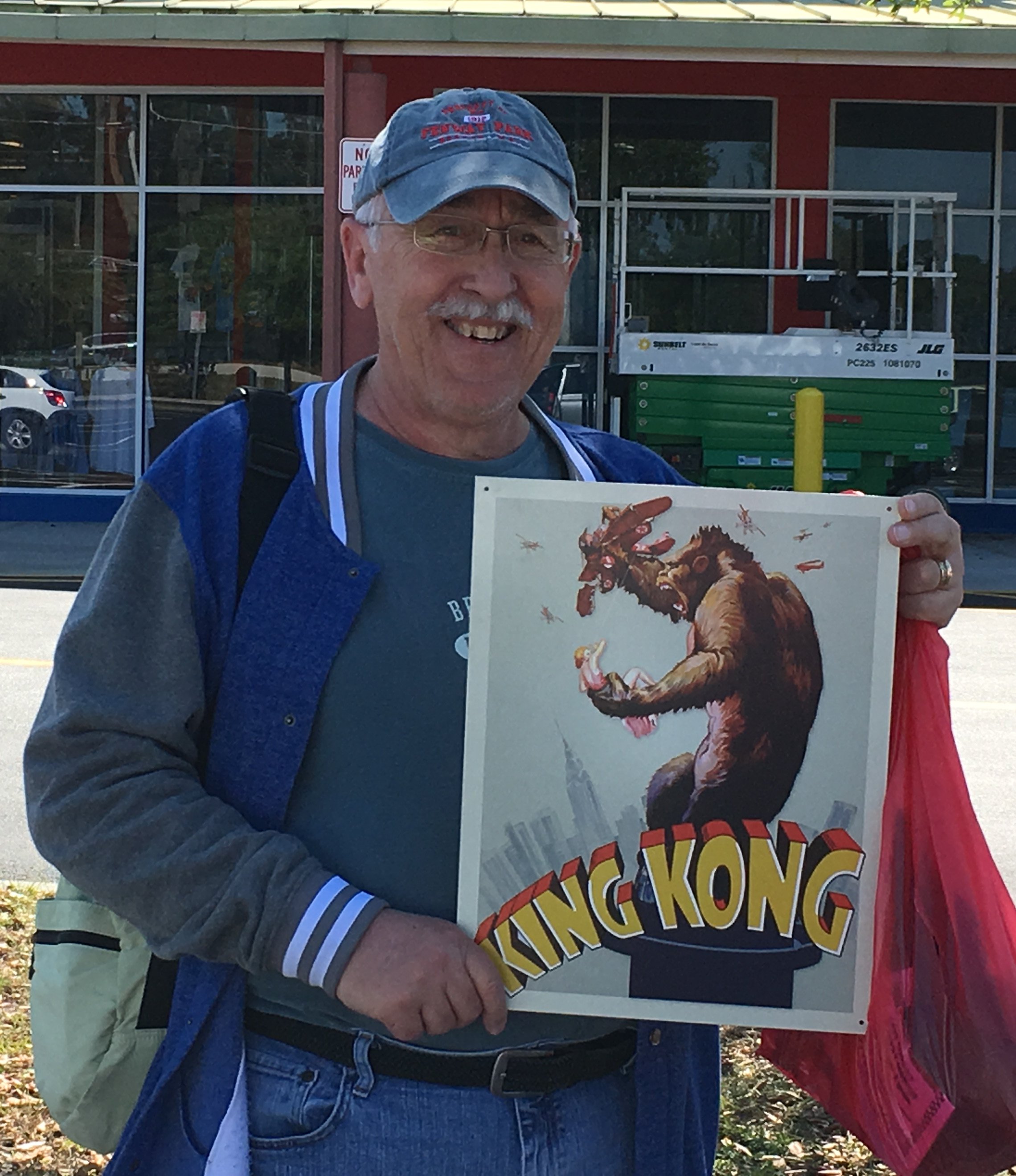 So in last week’s Log Entry we told you all about our visit to a Muscle Car show. What we didn’t tell you was that in their gift shop were hundreds of tins…including just one of the King Kong movie poster.  Yup!! And it now hangs on my office wall.  Wahoo.