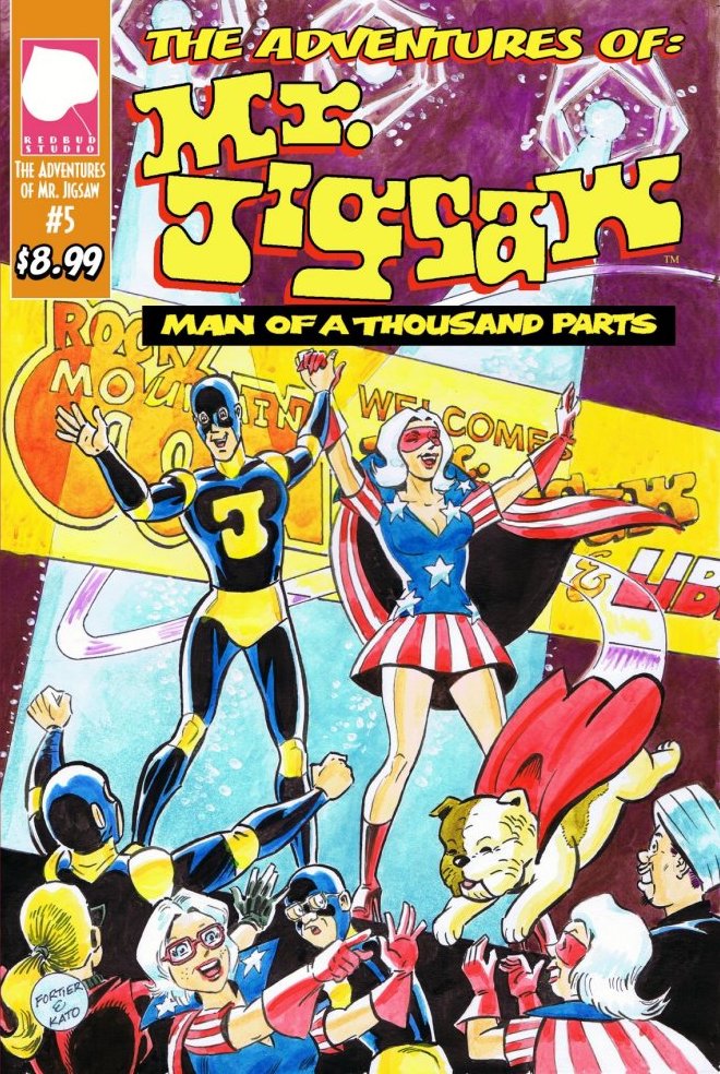 Ever since we released our first ever full color Mr. Jigsaw Christmas Special, we thought it would be smart go back and look closely at the five issues of THE ADVENTURES OF MR. JIGSAW.  Keep in mind, that each issue contains 3 full issues of the regular 24 pg MR. JIGSAW Man of a Thousand Parts comics series. In doing so, we realized that several volumes were no longer available and some actually had missing pages. At which point Redbud Studio Editor Rob Davis took it upon himself do to all brand new editions of each of the five volumes, insuring that each was complete and that includes adding special pin-ups rarely seen until now. And the Air Chief is delighted to tell all you Loyal Airmen that Rob’s task is complete. You can go to Amazon today and order any of these books with no problems should you wish to complete your Mr. Jigsaw comics collection. And don’t forget, that Full Color Christmas Special that kicked all this off is still there. We think you’ll enjoy any of these and will your kids or grand kids. As ever thanks for your continued support.