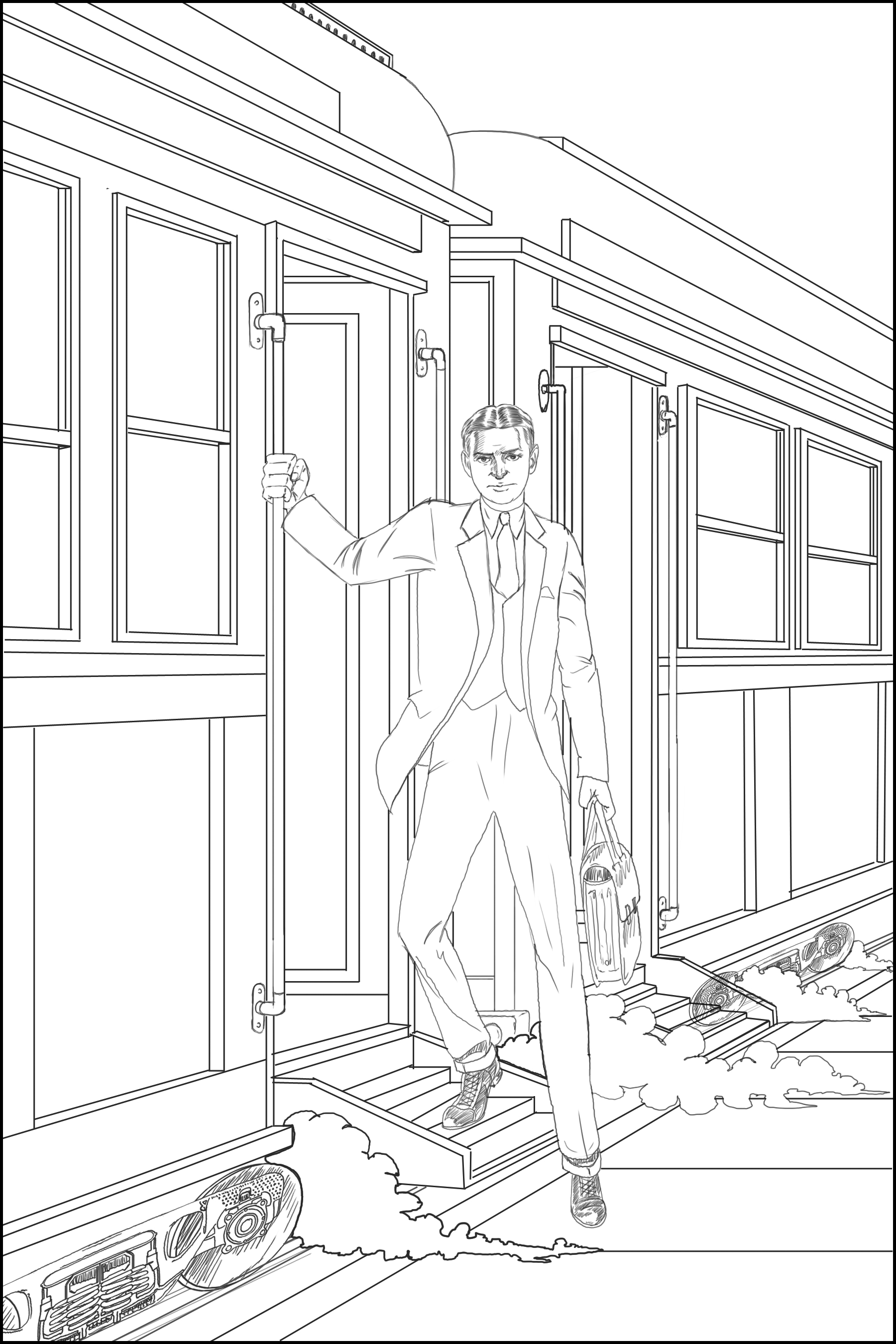 In the story, famous Federal Agent Elliot Ness comes to Memphis to hunt down the Bay Phantom to ascertain whether he’s really a vigilante working on the side of law and order or an actual crook. Above is a picture of the man himself and next to that illustrator Kevin Paul Shaw Broden’s wonderful sketch of Ness arriving in the city. We’ve said it before and this is just another example, Airship 27 has the best artists in publishing today.