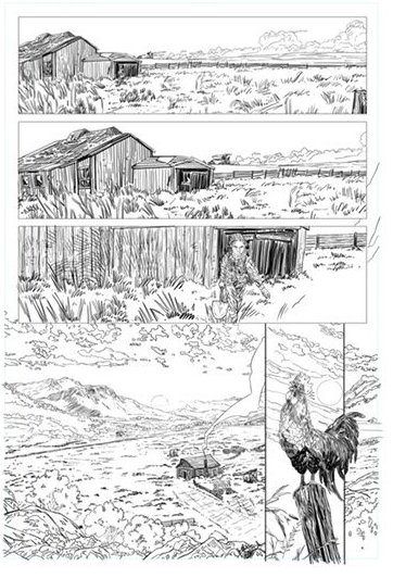 As promised above, here are some of artist Zane DeGaines’ newest pages for our western comic series, “Hamlet’s End.” Issue # 1 will be 22 pgs. The book will be funded via Kickstarter. Stay tuned for more as the project develops.