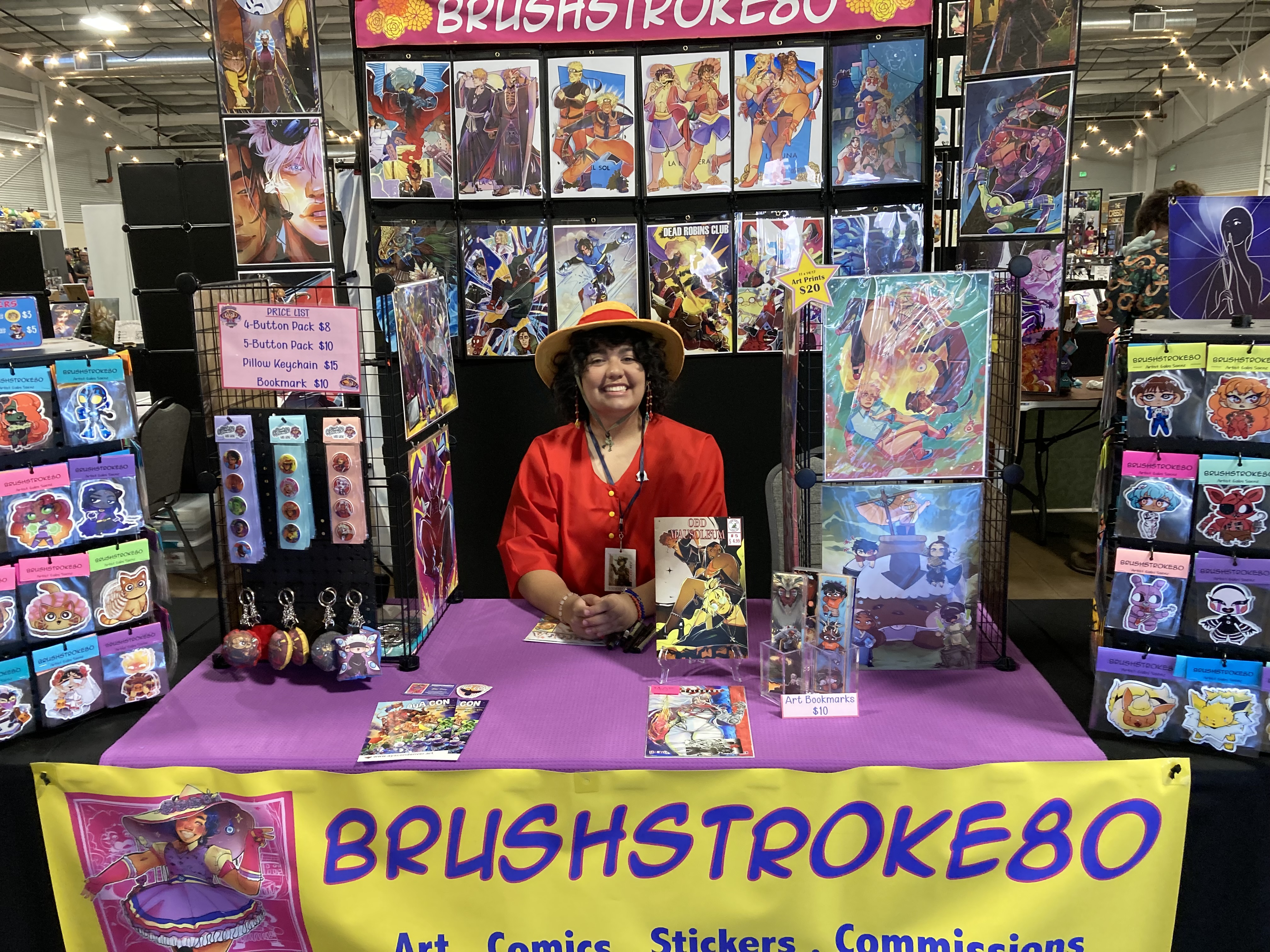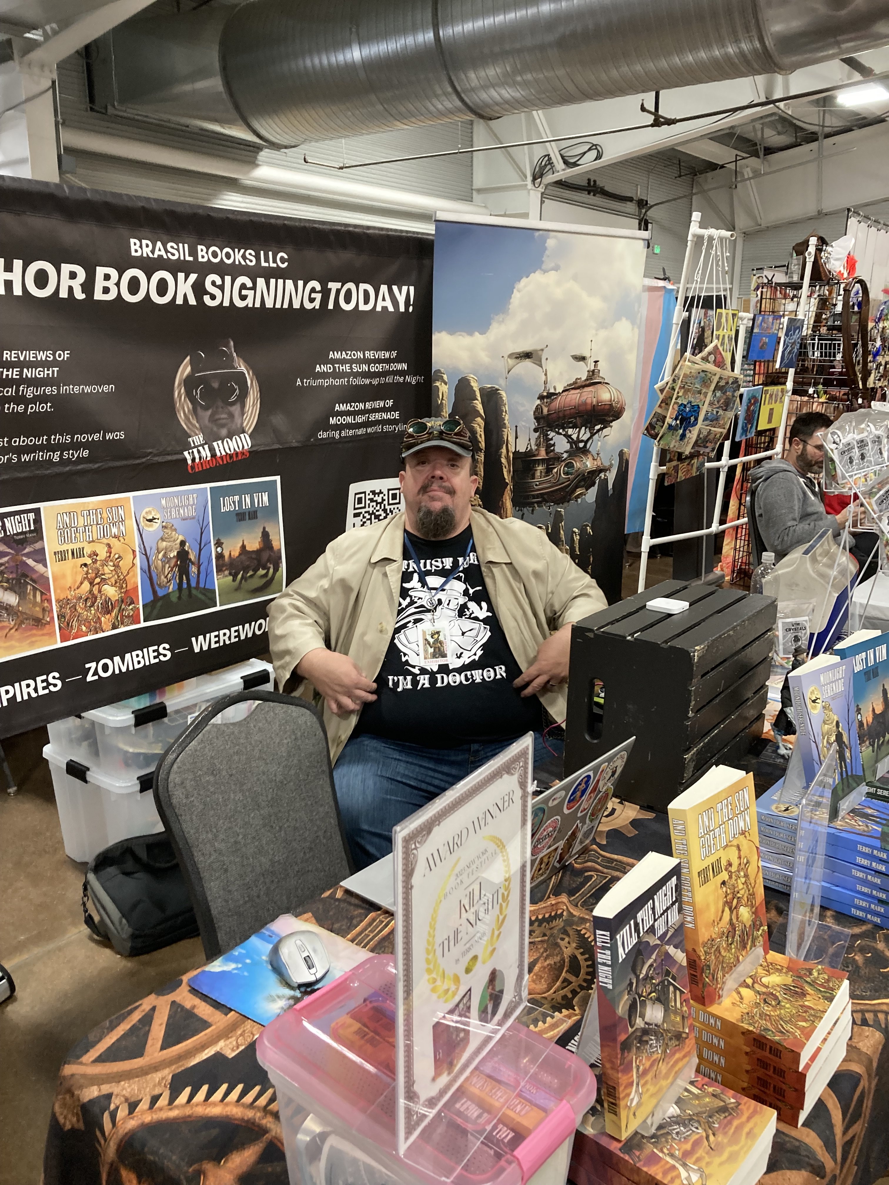 Our con neighbor to the left was pulp writer and former student, Terry Crawley. Terry and the Air Chief recently wrote a horror movie screenplay which we hope to show independent filmmakers. Next was the lovely and ever bubbly Gabriella Zaenz, another former student now in college studying art and education.