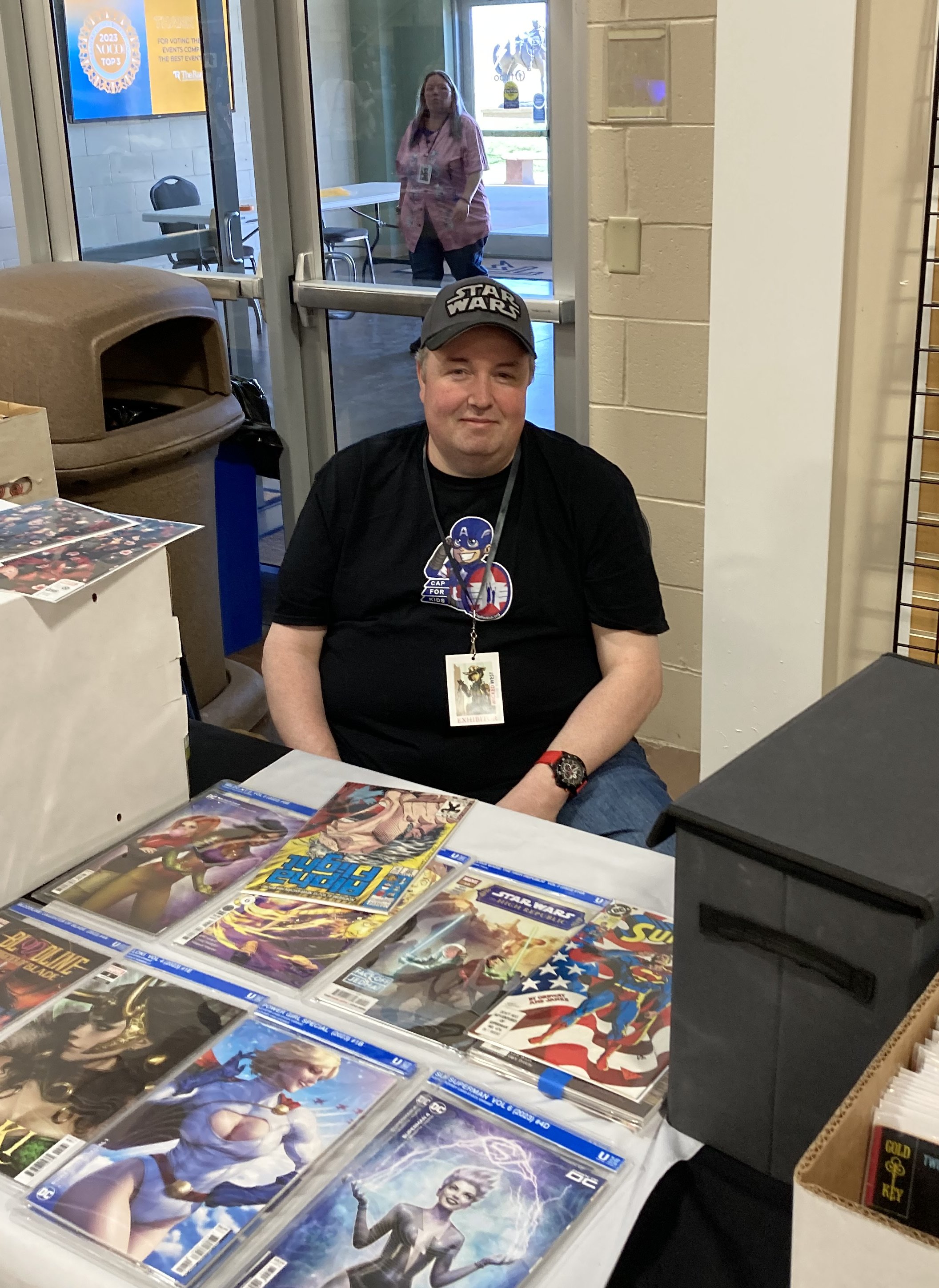 Also at the even were Lee Oaks (left) with his table full of really fun mini custom figures. Then there was the creator of the Rocky Mountain Con himself, Tim Moret (right). Val and the Air Chief consider his show, RMC, our home con and look forward to be guests there every November.