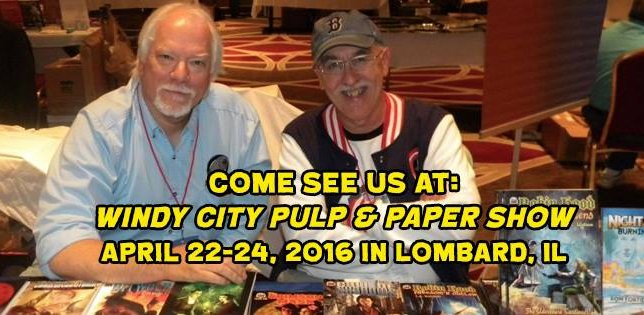 Greetings Loyal Airmen, as you read this week’s Flight Log, the Air Chief and Chief Engineer Rob Davis are at the 2016 Windy City Pulp & Paper Convention in beautiful Lombard, Illinois, just outside of Chicago. Every year this show is a blast and we get to see old friends and make tons of new ones. On Friday night the Air Chief will once again be hosting the Pulp Factory Awards presentations. Rest assured we’ll post the list of winners here next week. And then on New Pulp Sunday we have all those great panels we mentioned here last week. As you can see this is a busy, fun time us and hundreds of pulp fans. Please, if you are anywhere near the area, come on down and join in.