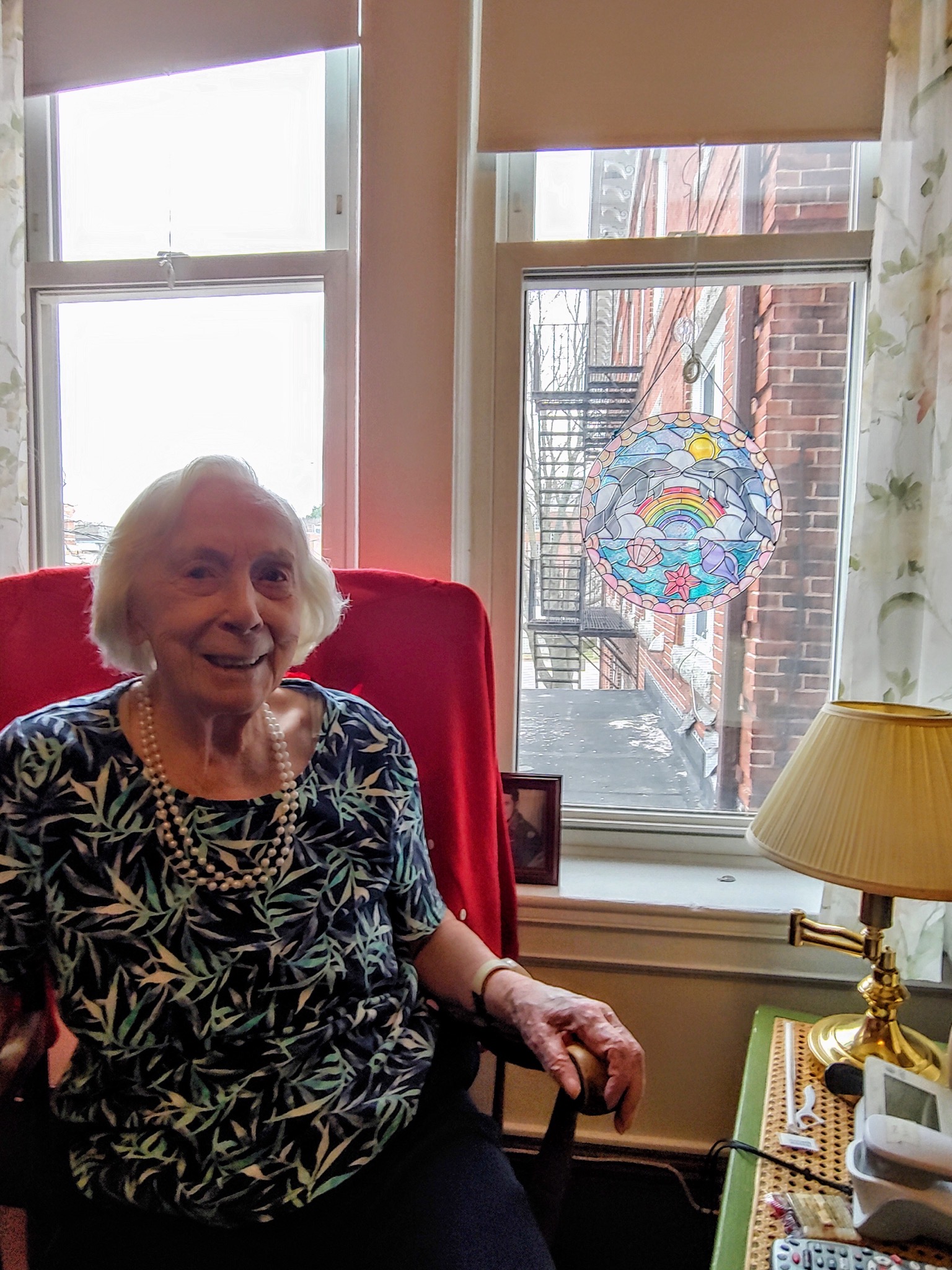 Despite the social quarantine we find ourselves in, there are always glimmers of hope and sunshine as the picture of our Mom, Gabrielle Fortier, taken last week by Samantha James, the social director at the senior facility where she lives. She’s doing great and we thank God for that every day.
